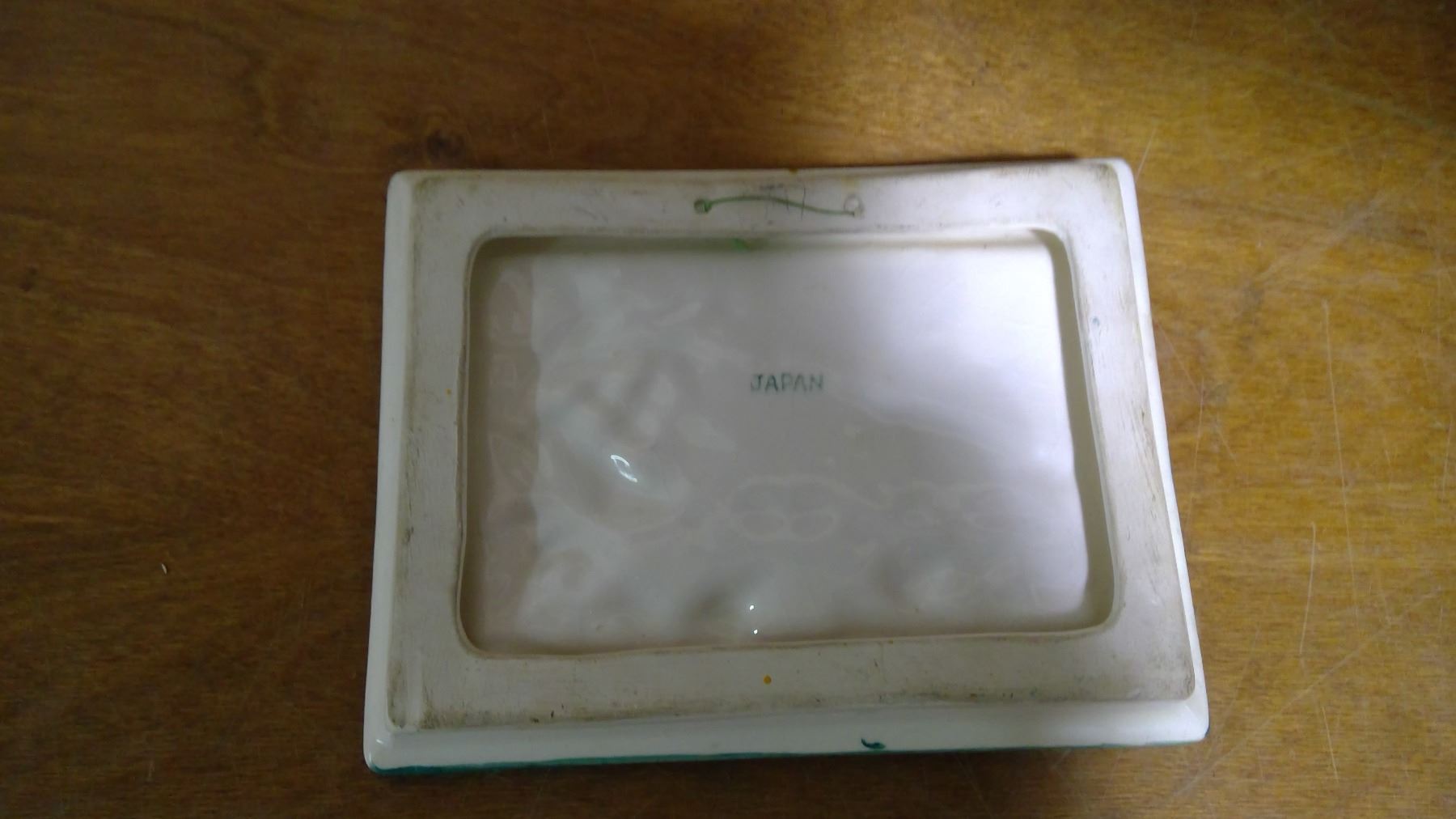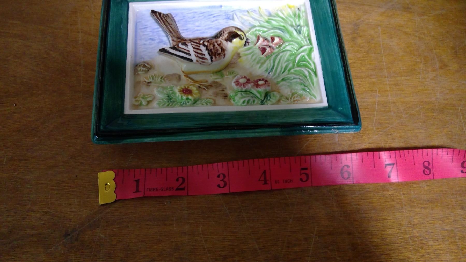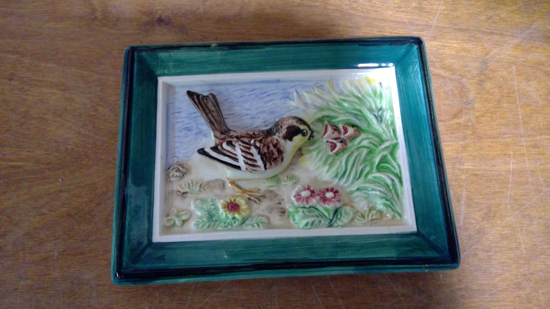 SMALL ALL GLASS GREEN BORDER RAISED BIRD PICTURE (JAPAN)