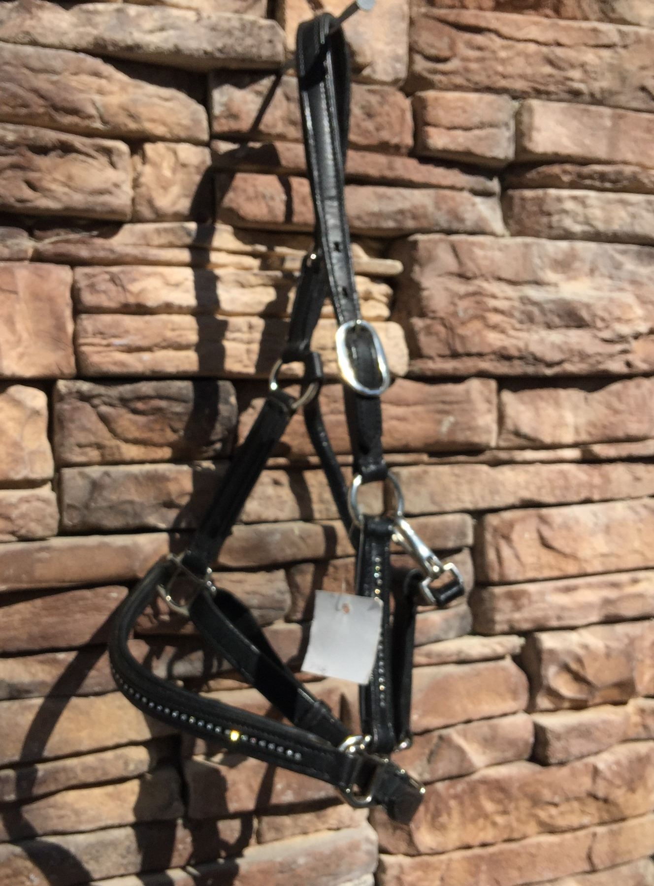 SMALL BLACK LEATHER SHOW HALTER/SWARVARSKI CRYSTAL ACCENTS