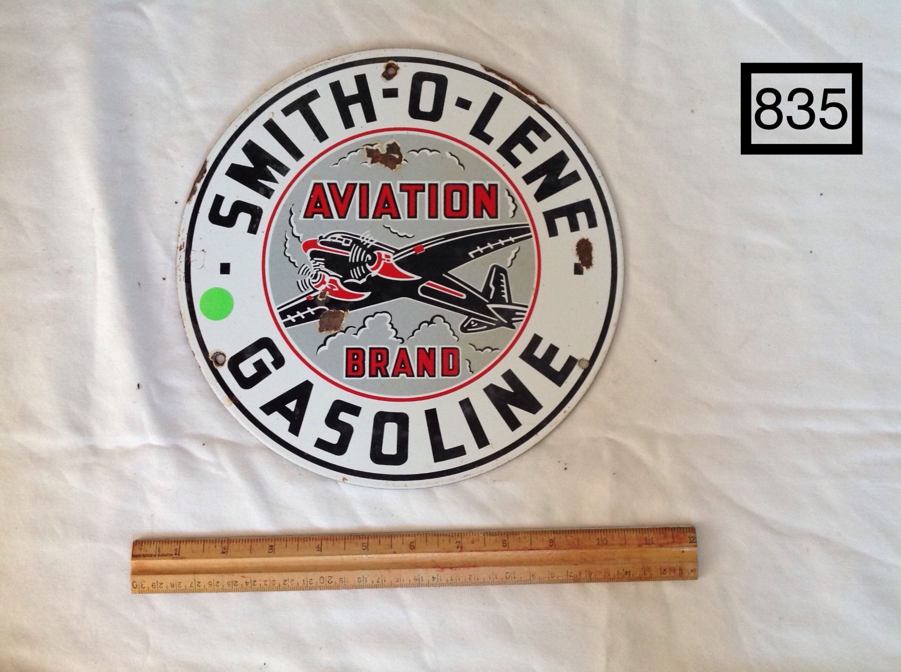 SMITH-O-LENE GASOLINE. -HEAVY METAL PORCELAIN SIGN. (REPRODUCTION)