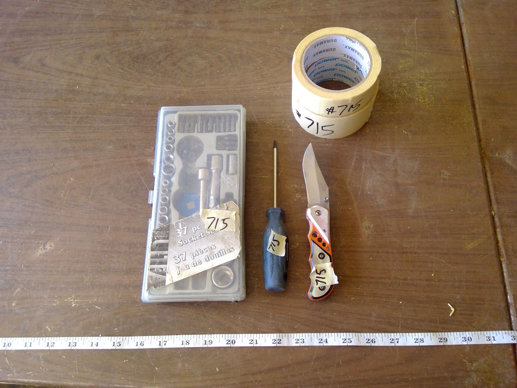 SOCKET SET, SCREWDRIVER, KNIFE, MASKING TAPE