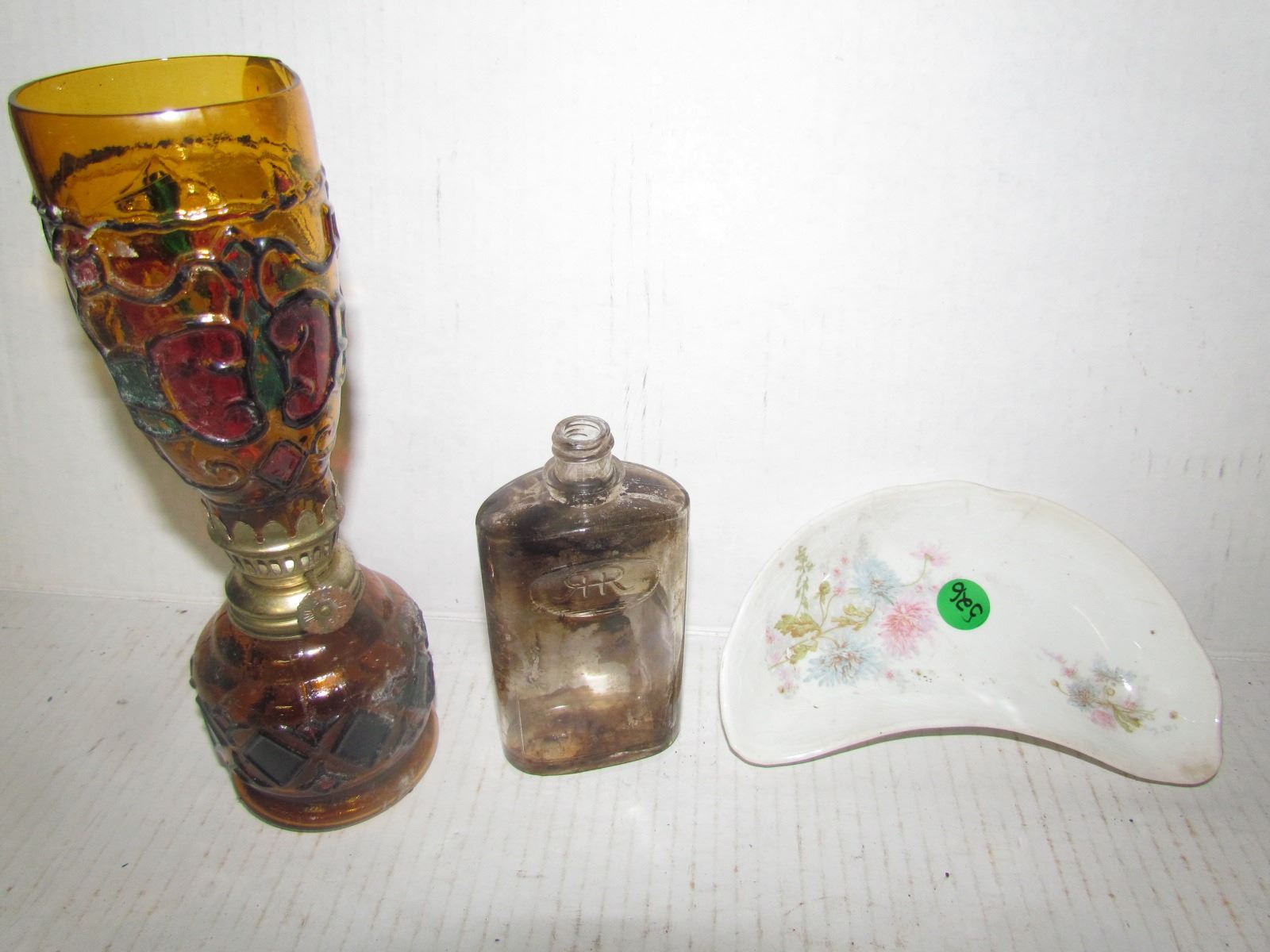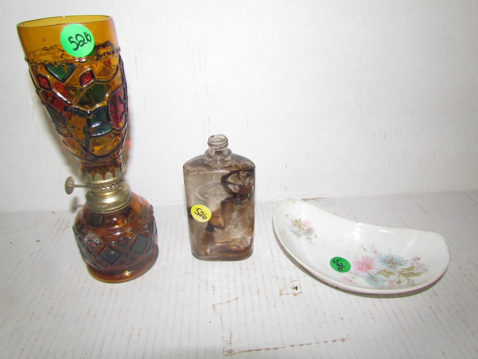 STAIN GLASS OIL LAMP, BOTTLE, DISH