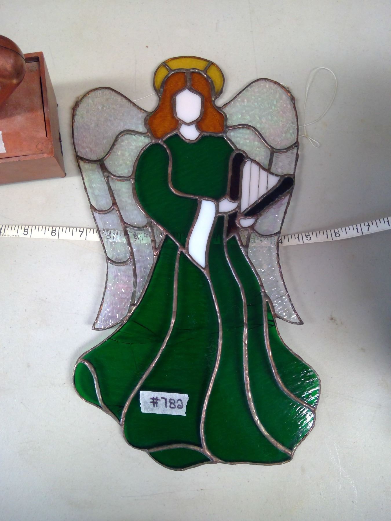 STAINED GLASS ANGEL AND SMALL DECORATIVE FOUNTAIN