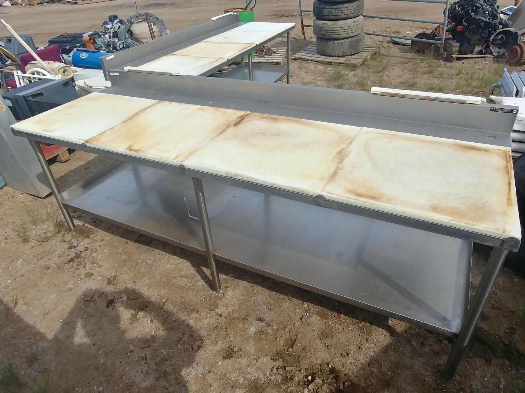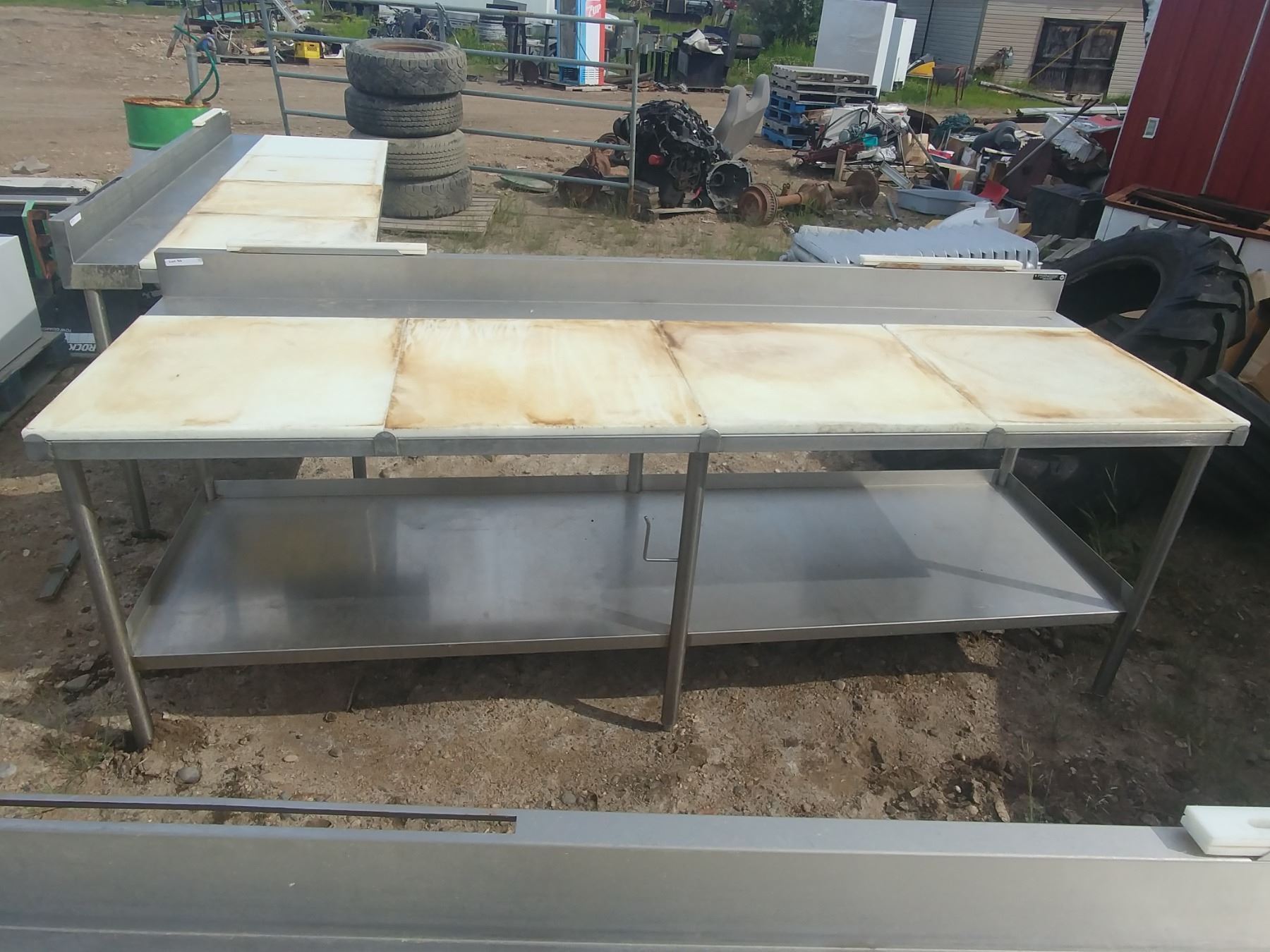 STAINLESS TABLE W/ POLY TOP, BACKSPLASH AND KNIFE HOLDERS