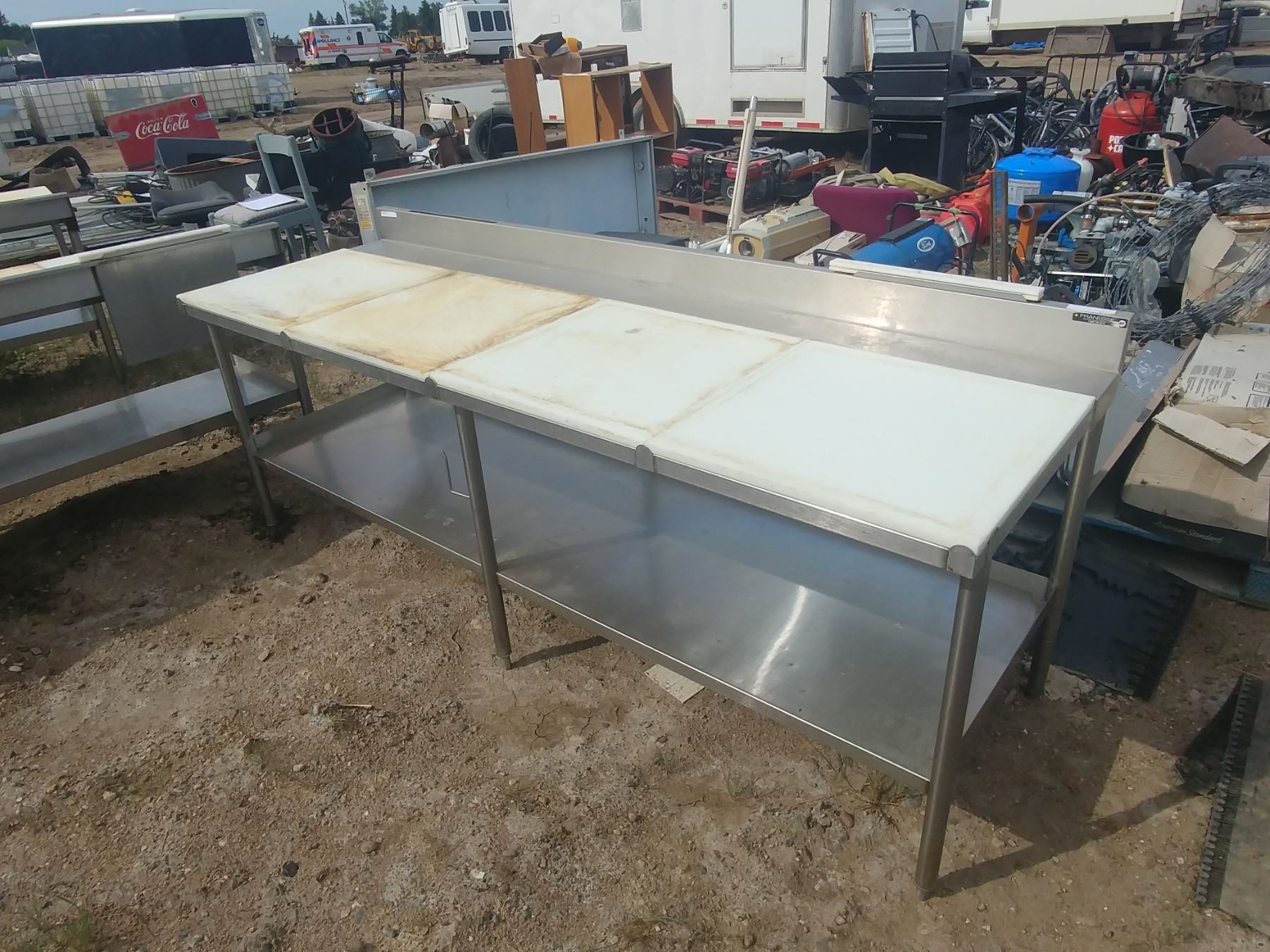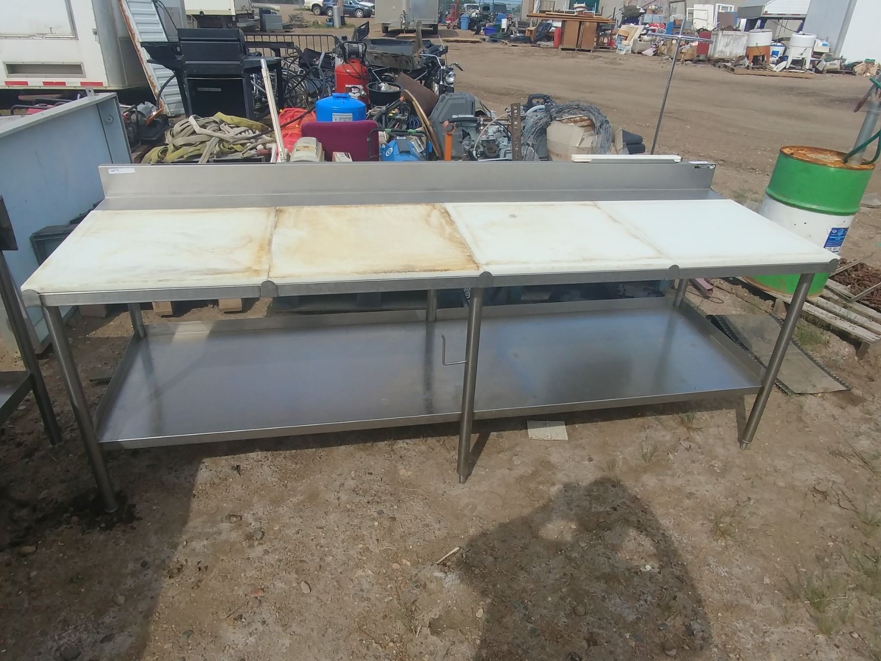STAINLESS TABLE W/ POLY TOP, BACKSPLASH AND KNIFE HOLDERS