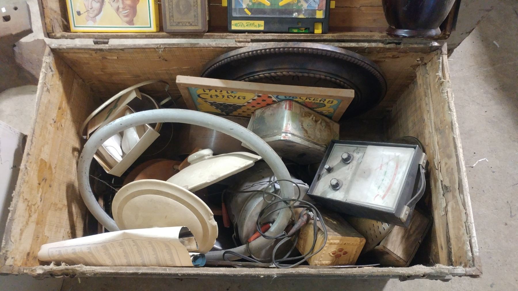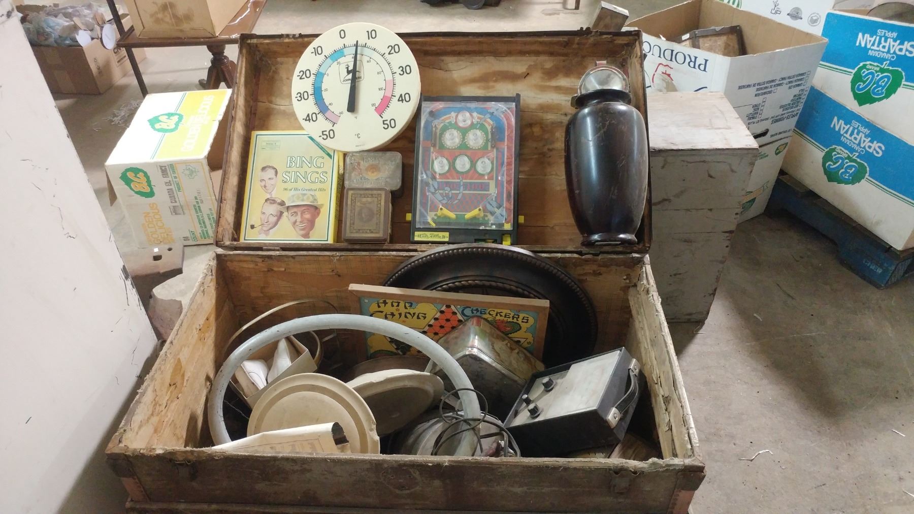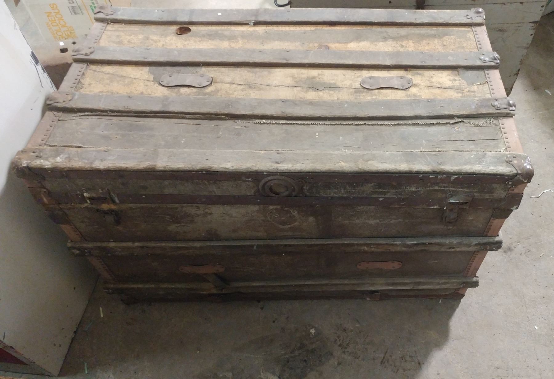 STEAMER TRUNK FULL OF COLLECTIBLES (36.5" X 20" X 23")