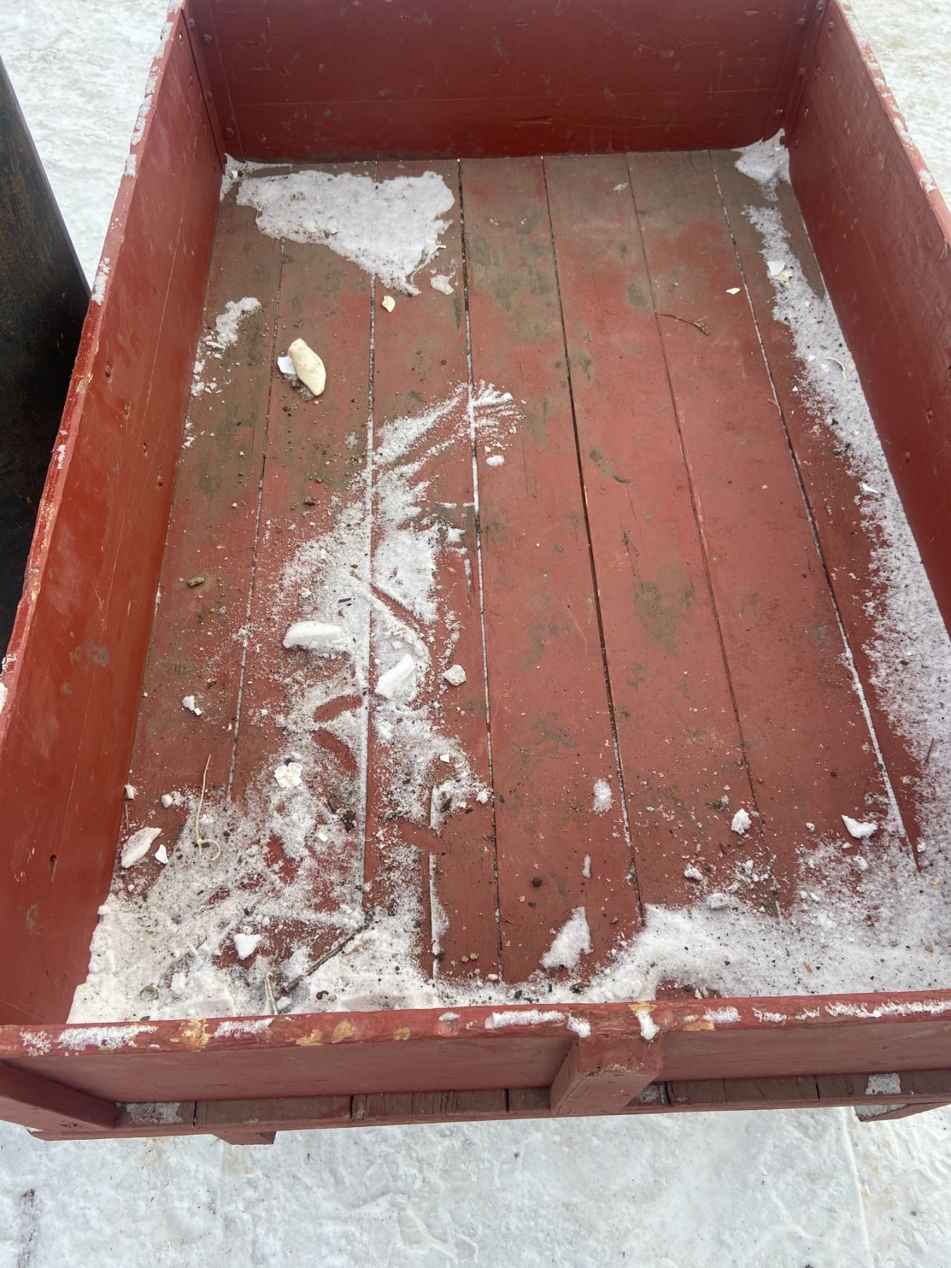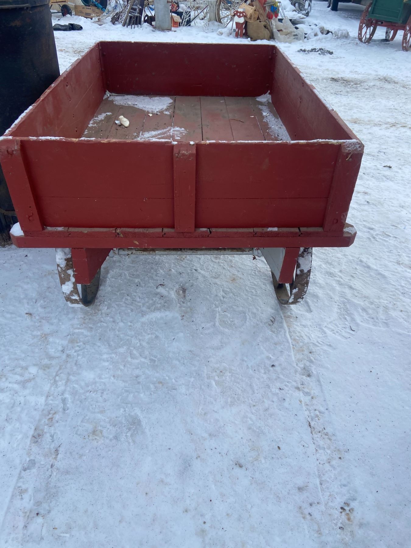 STEEL WHEELED WAGON, WOOD BOX, 54" X 36"