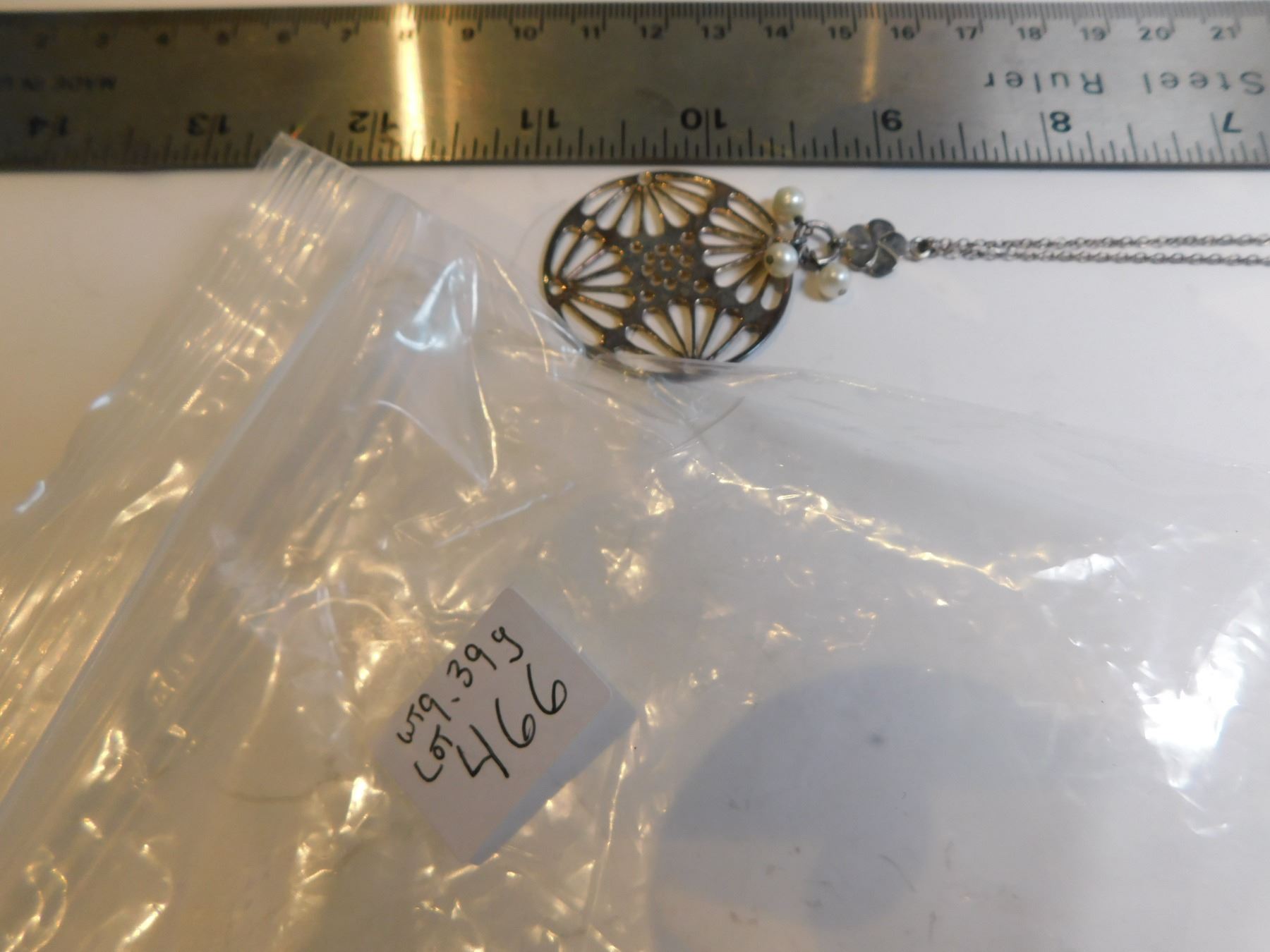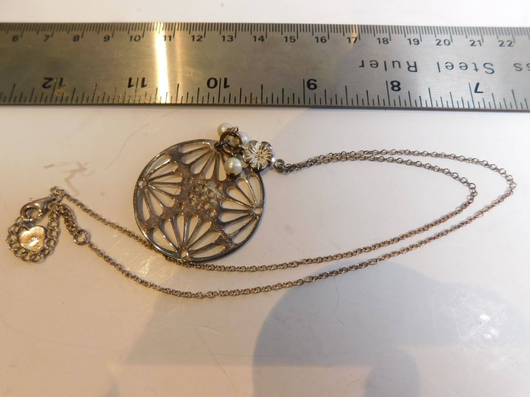 STERLING AND PEARL PENDANT AND CHAIN 9.39g