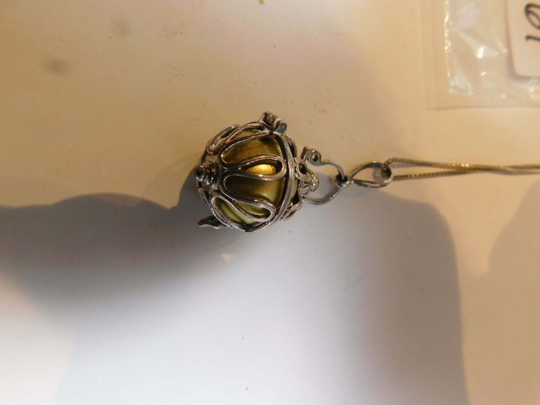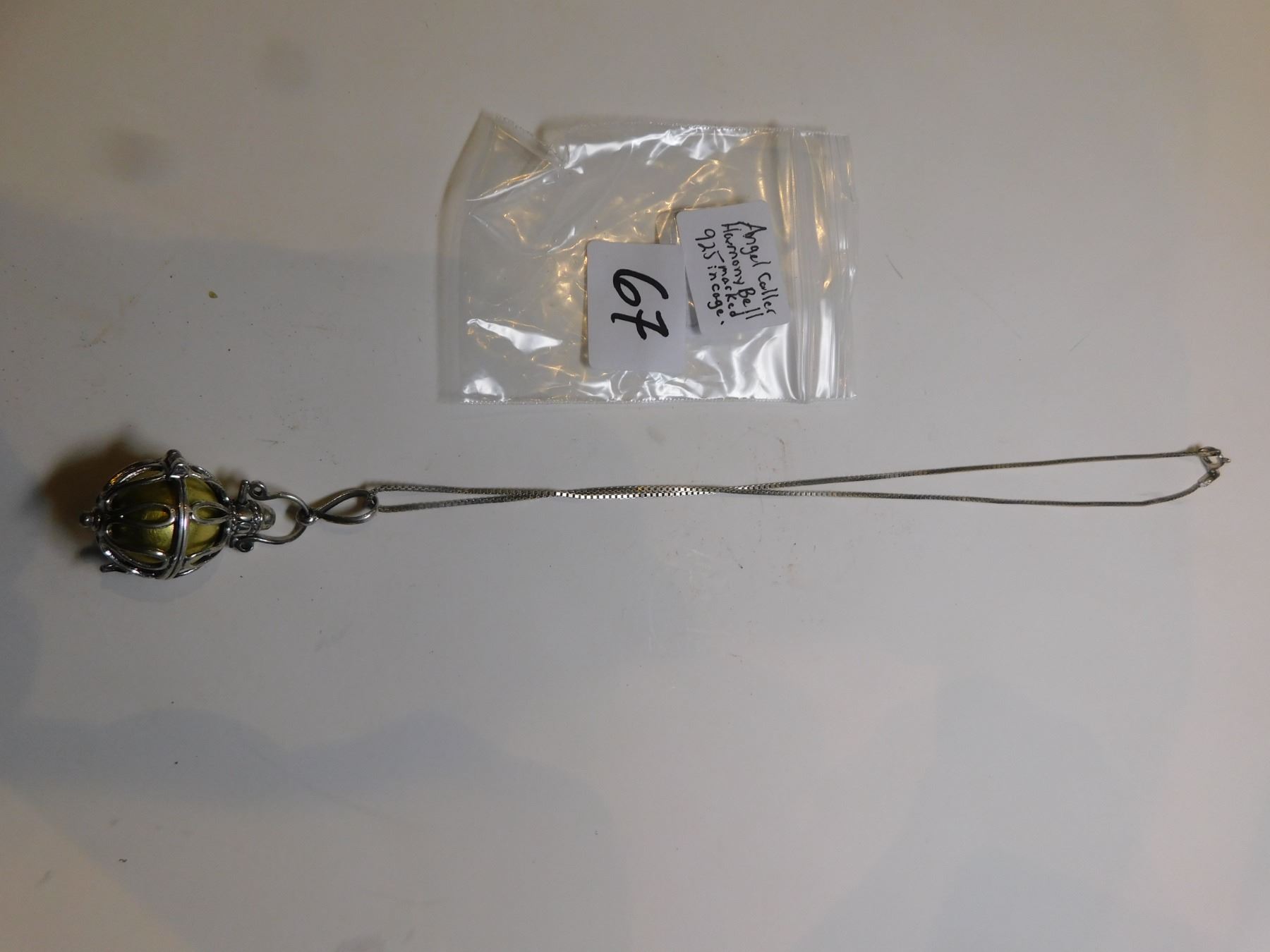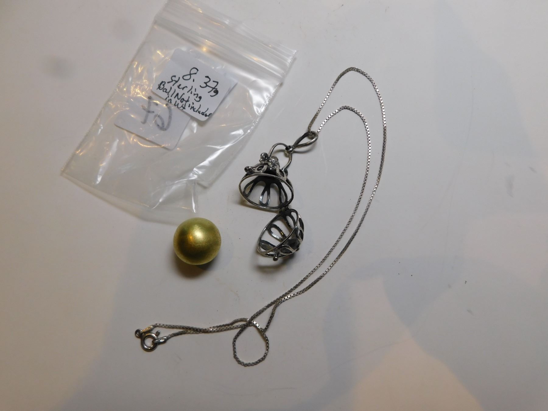 STERLING ANGEL CALLER HARMONY BALL PENDANT ON 16” 925 CHAIN 8.3 G