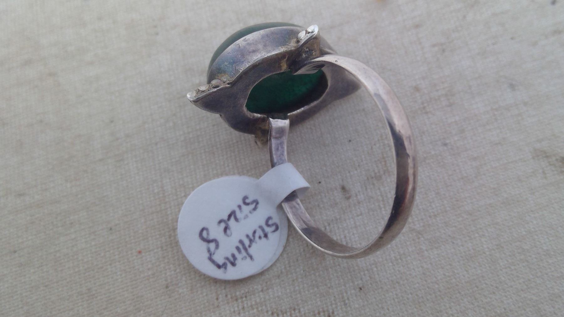 STERLING SILVER AND ZOISITE RING - SIZE 8