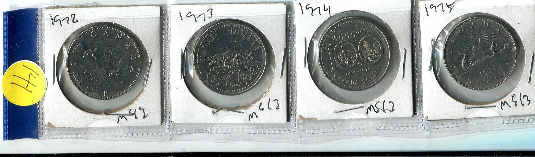 Stip of Four $1 Coins - 1972-75