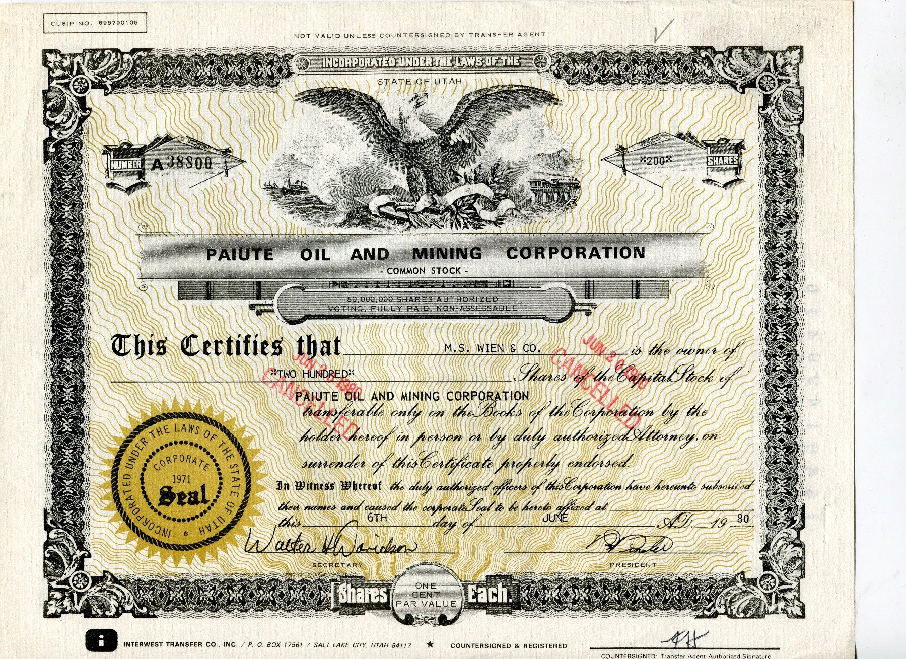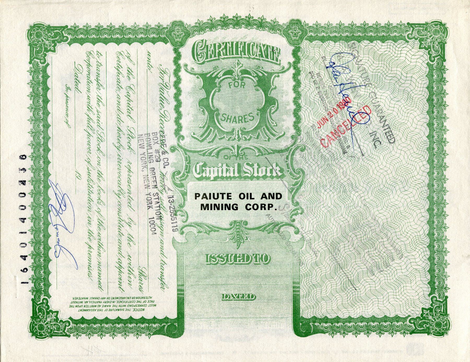 STOCK SHARE (PAIUTE OILAND CORP, NEW YORK) *1980*