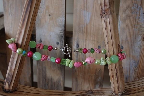 STONE LIME AND PINK NECKLACE/Necklace with pink and green stones and beads/8"