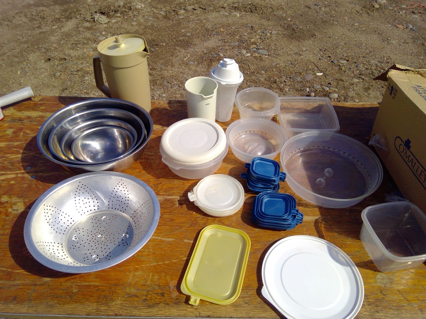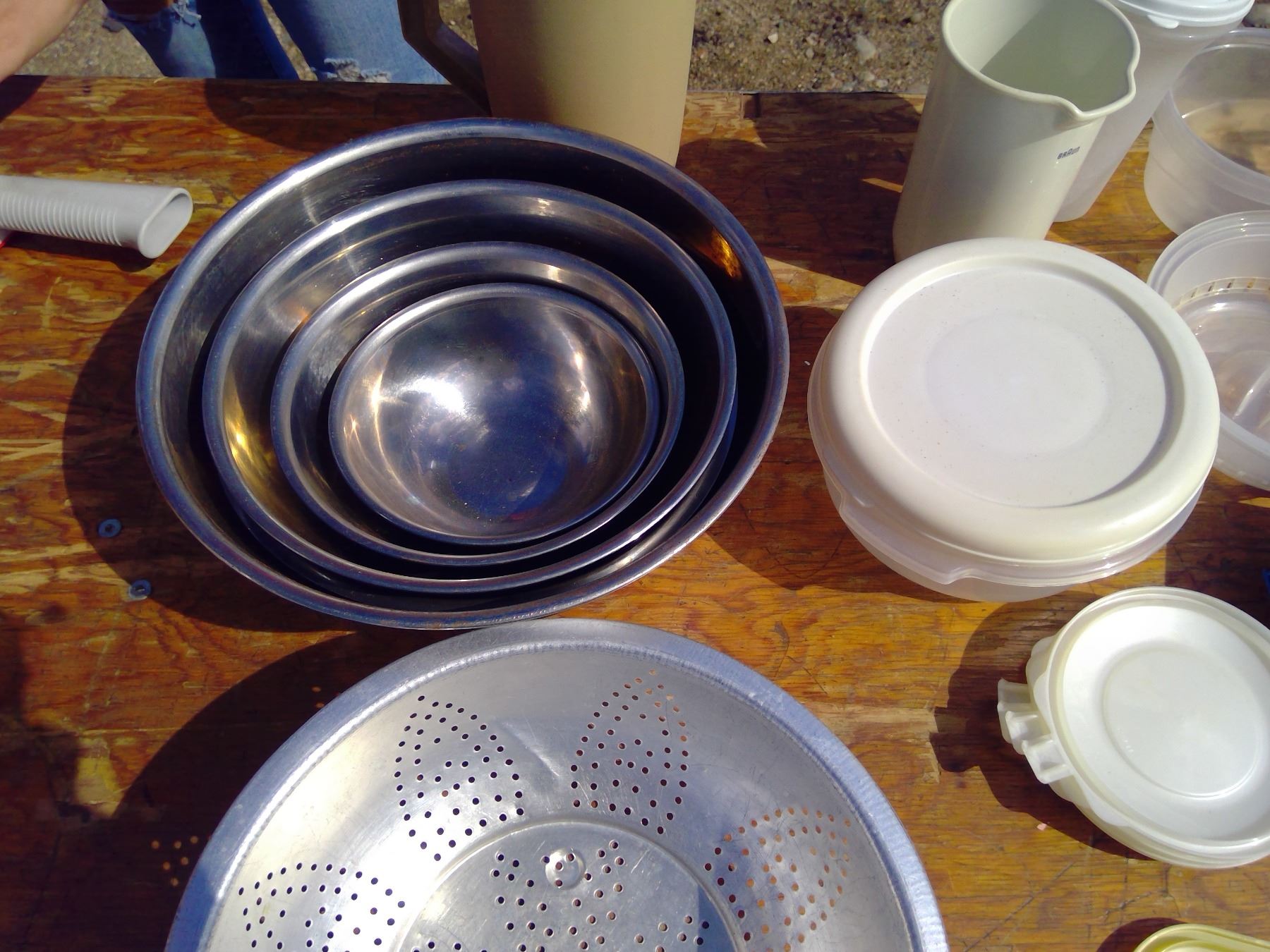 STRAINER + METAL BOWLS +TUPPERWARE / KITCHEN ITEMS + JUICE PITCHER