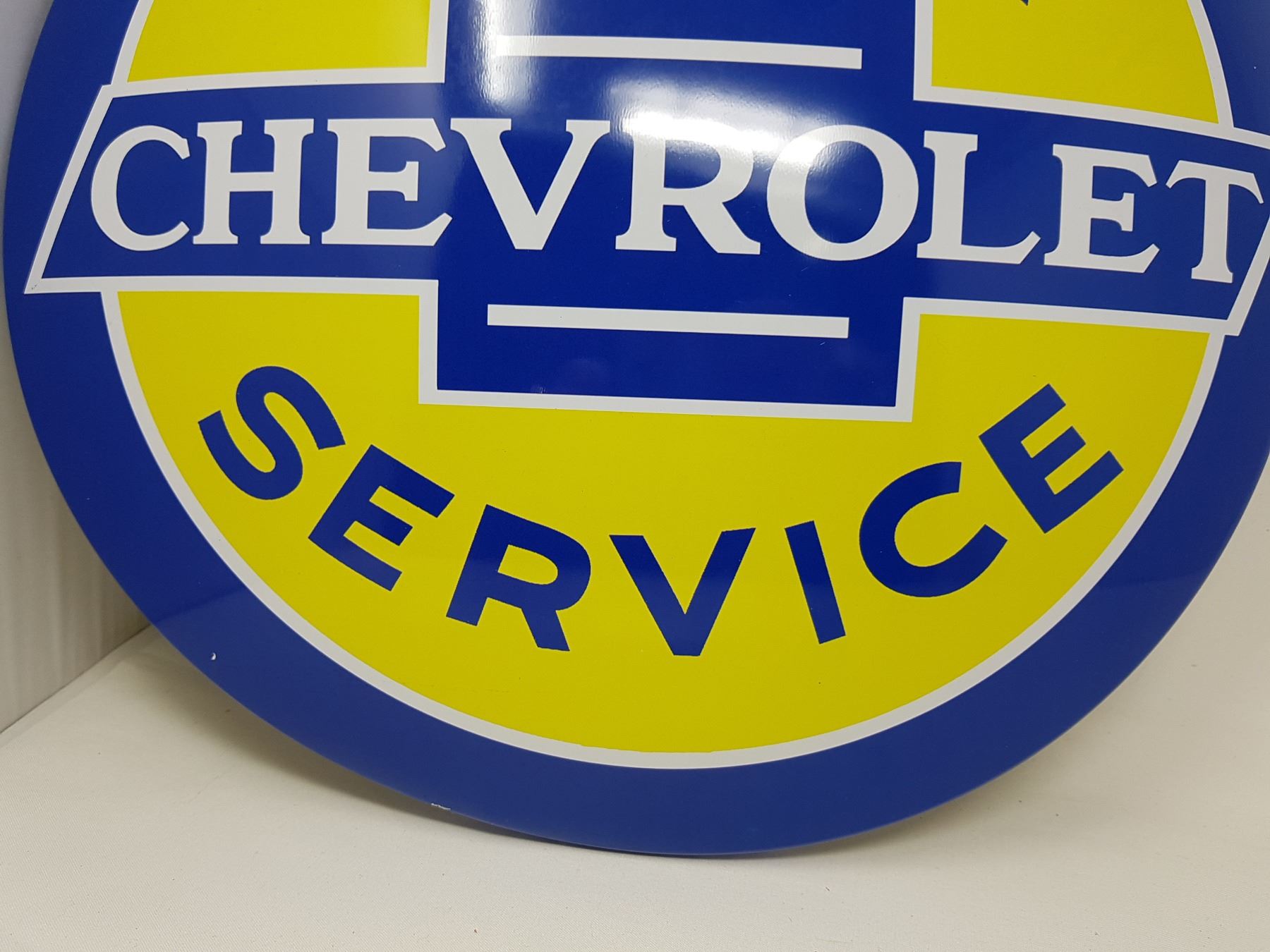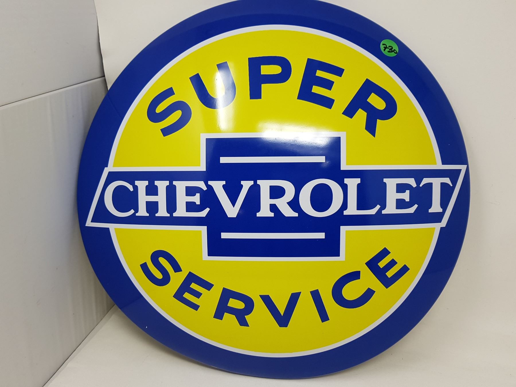 SUPER CHEVROLET SERVICE TIN DOMED SIGN (REPRODUCTION) *16"*