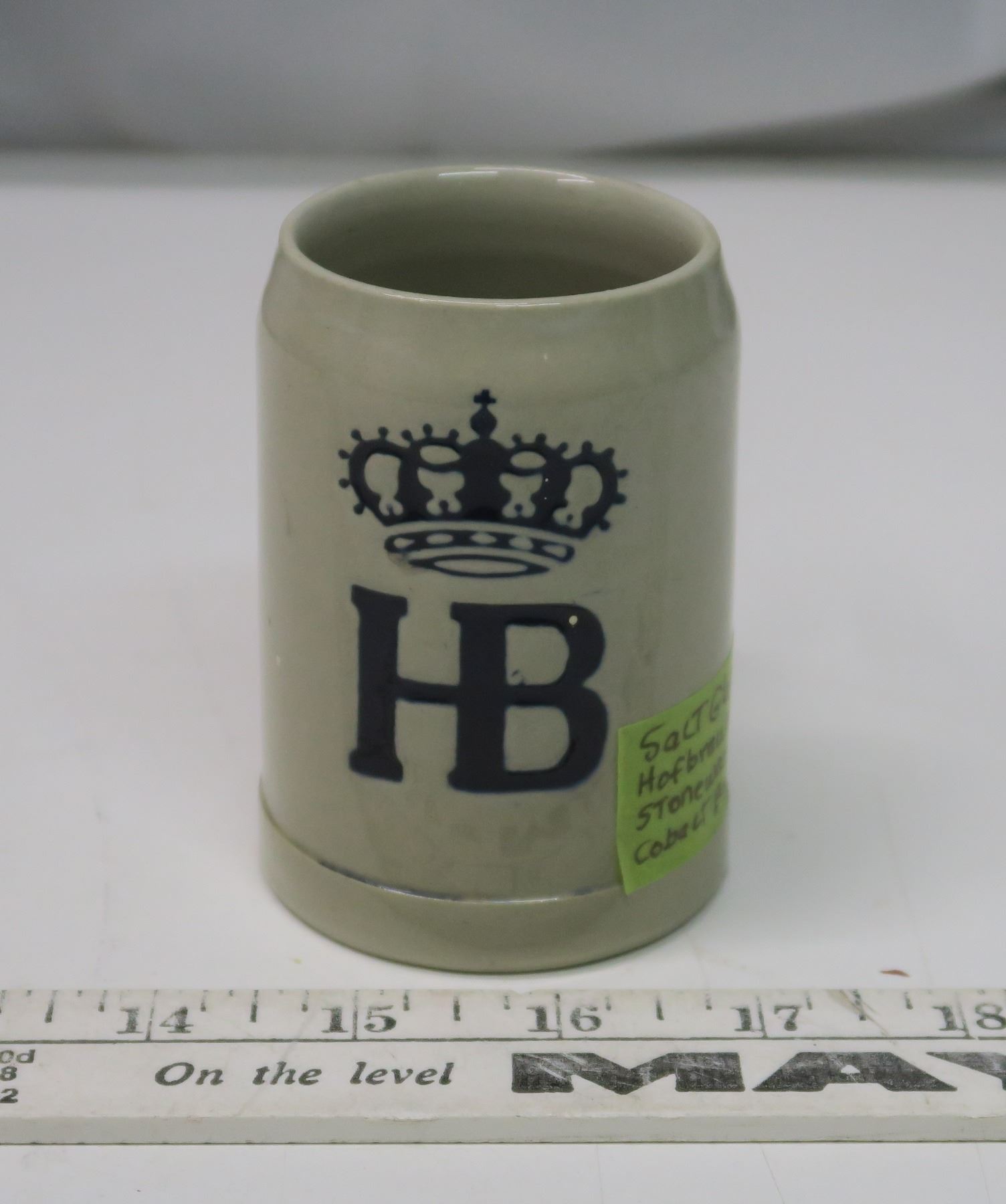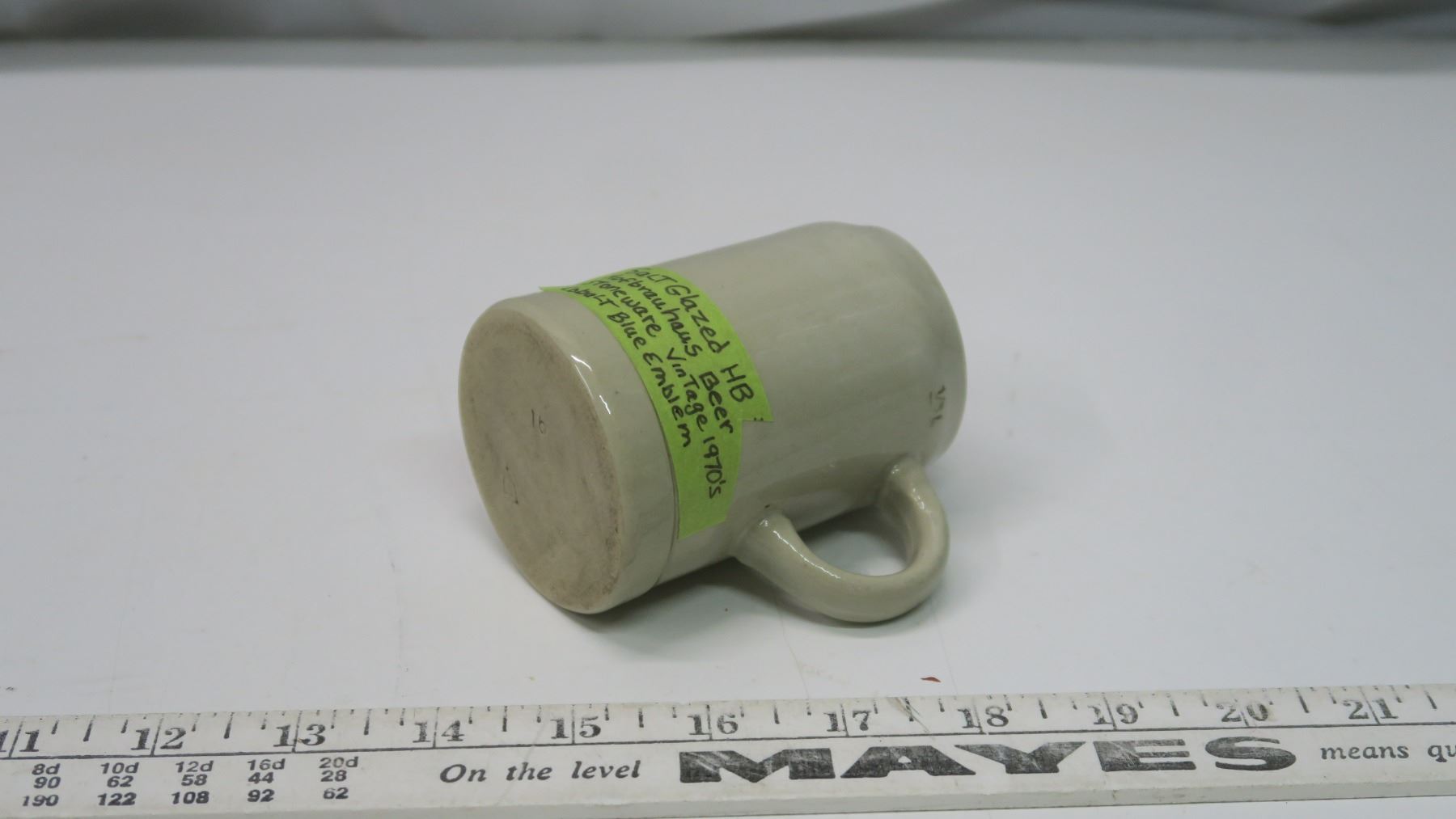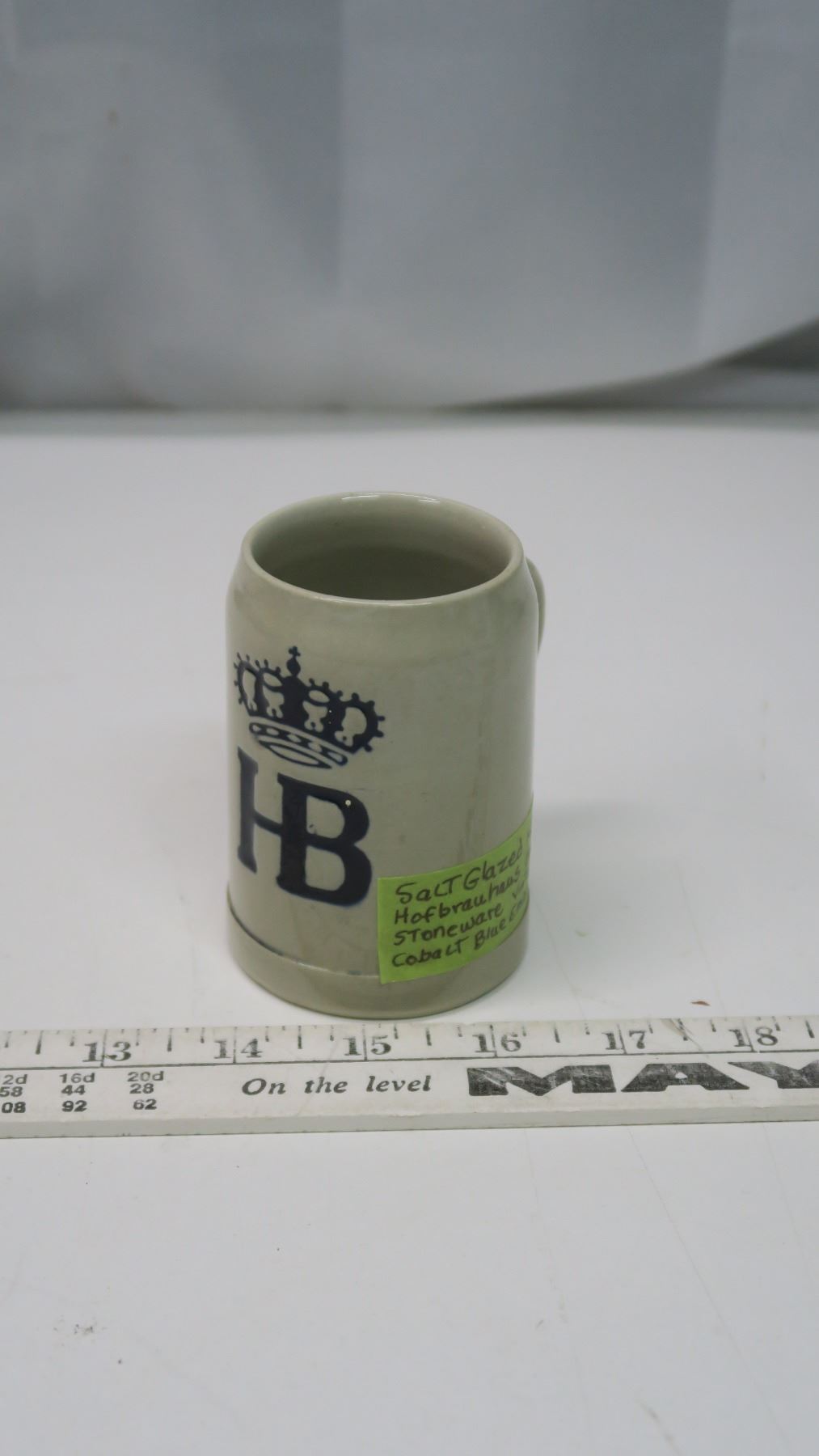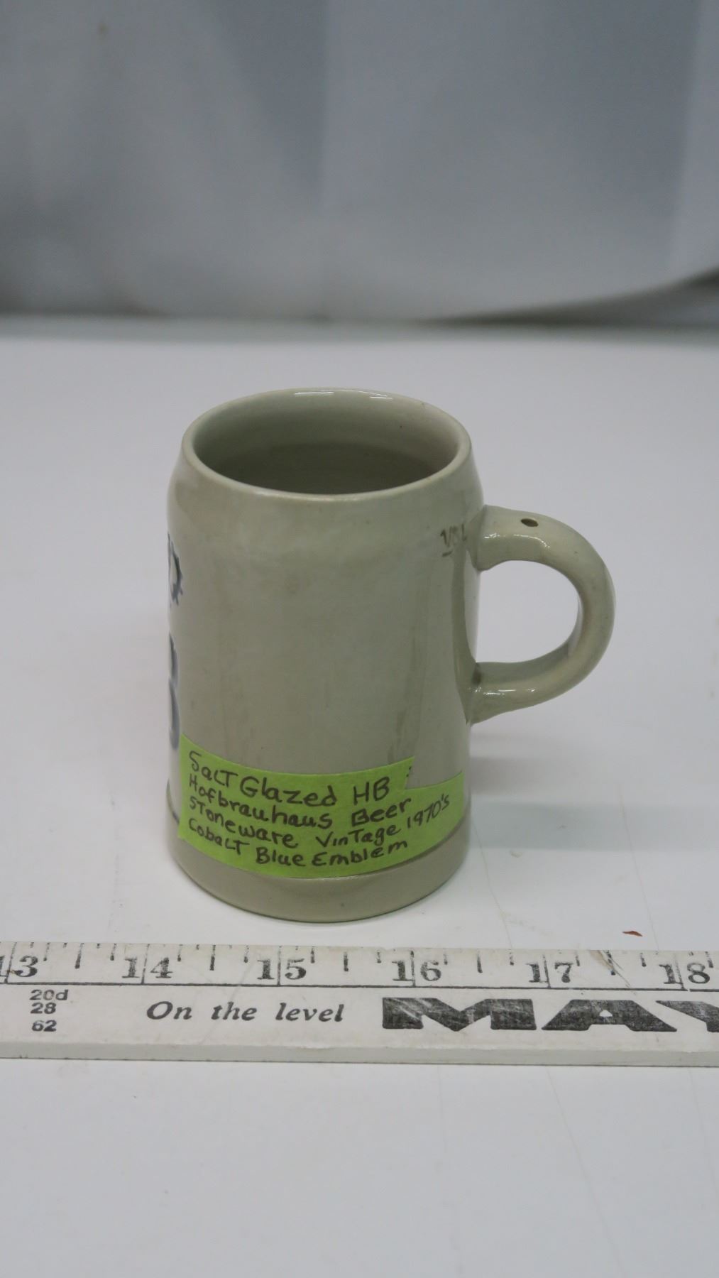 Salt Glazed HB Hofbrauhaus Beer Mug Stoneware Cobolt Blue Emblem 1970