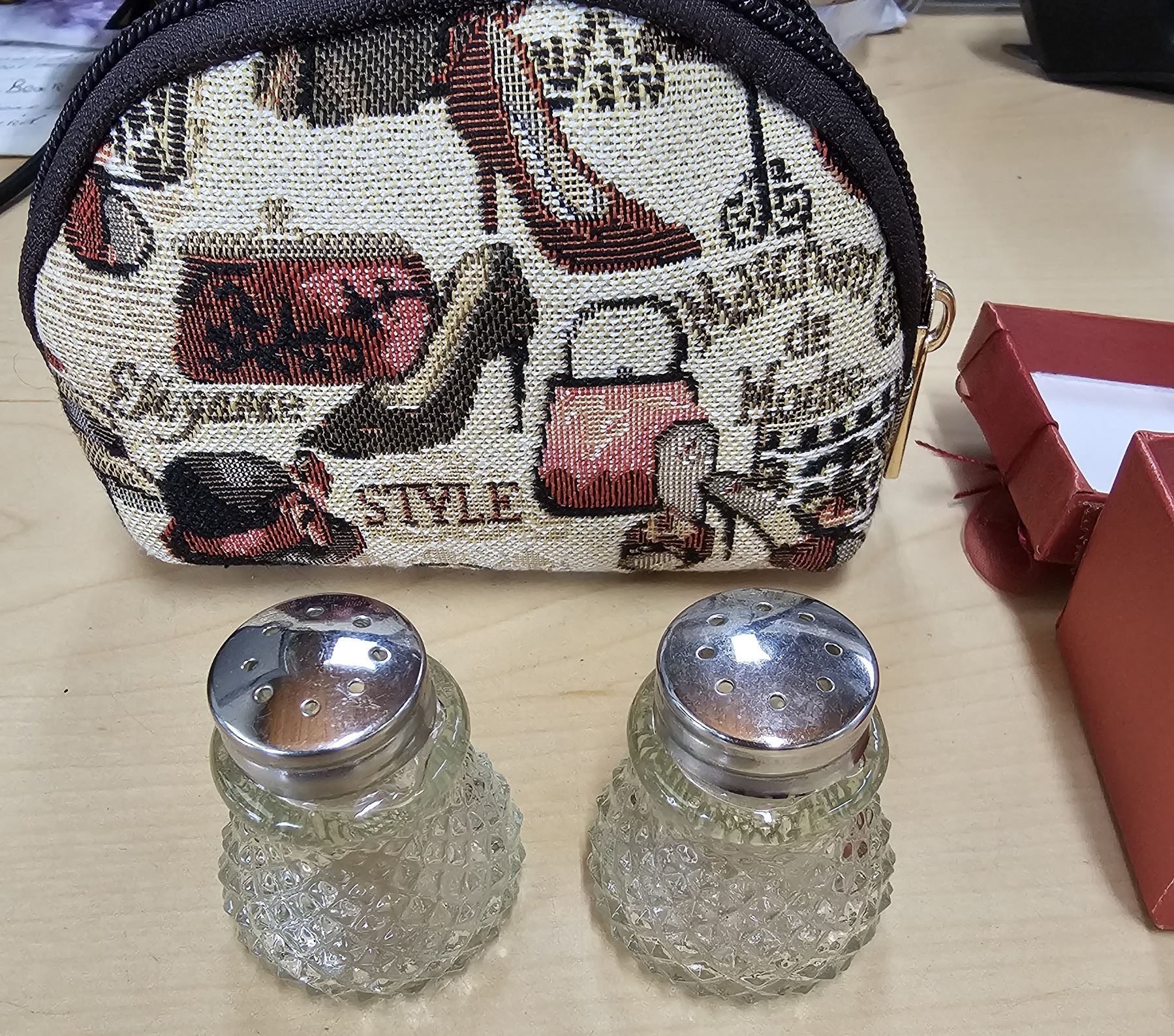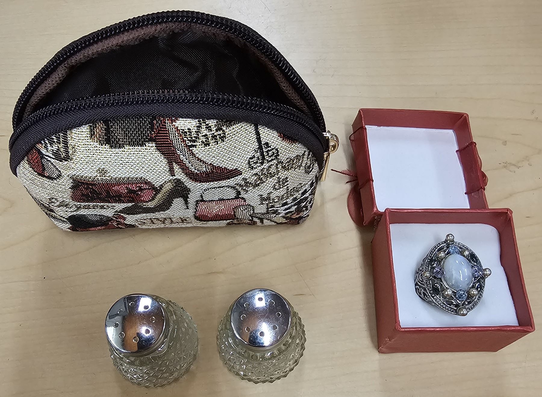 Salt/Pepper Shaker, Pouch, Gemstone Ring