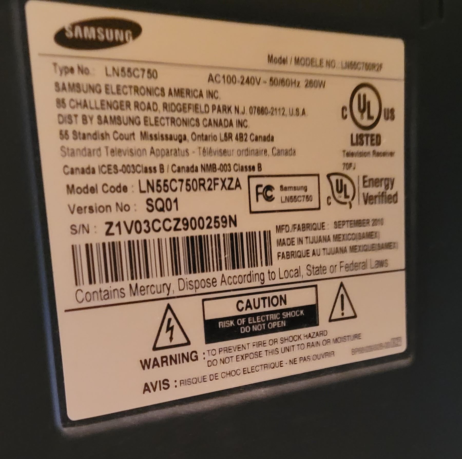 Samsung 54" TV - LN55C750 + TV wall mount & accessories