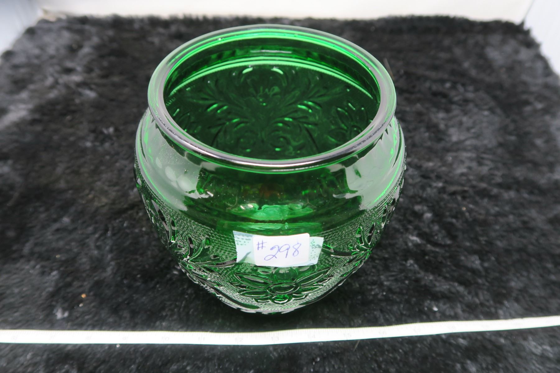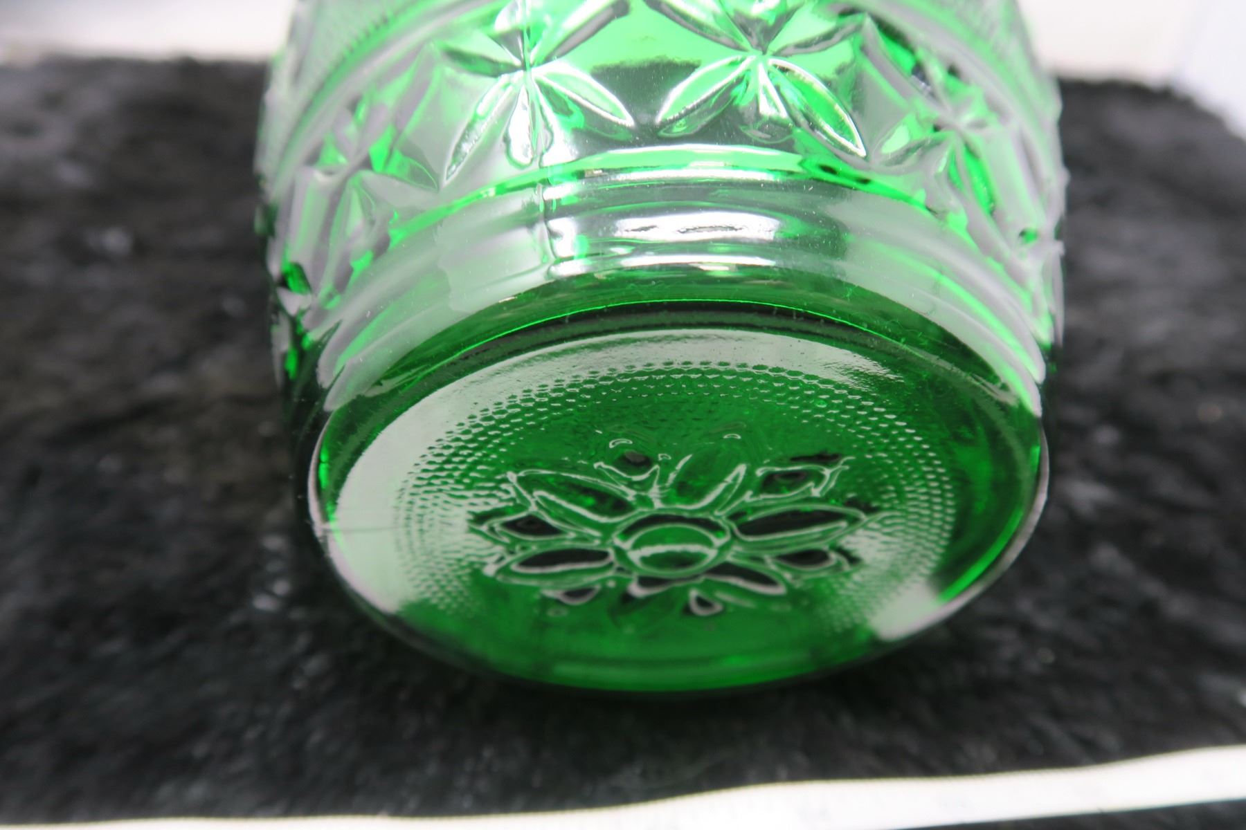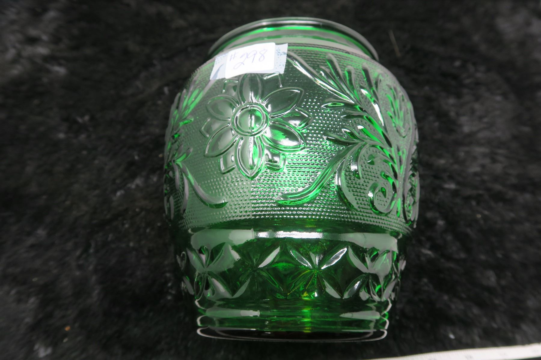 Sandwich pattern Forest Green vase, Anchor Hocking glass, 1939-64