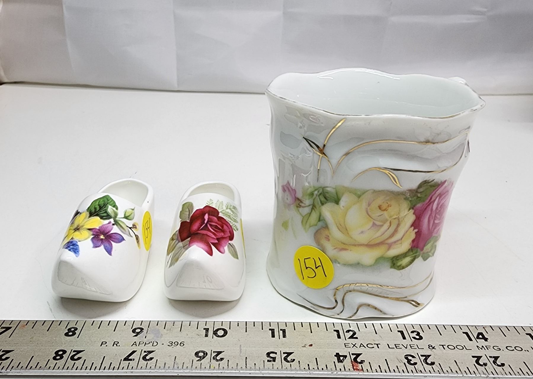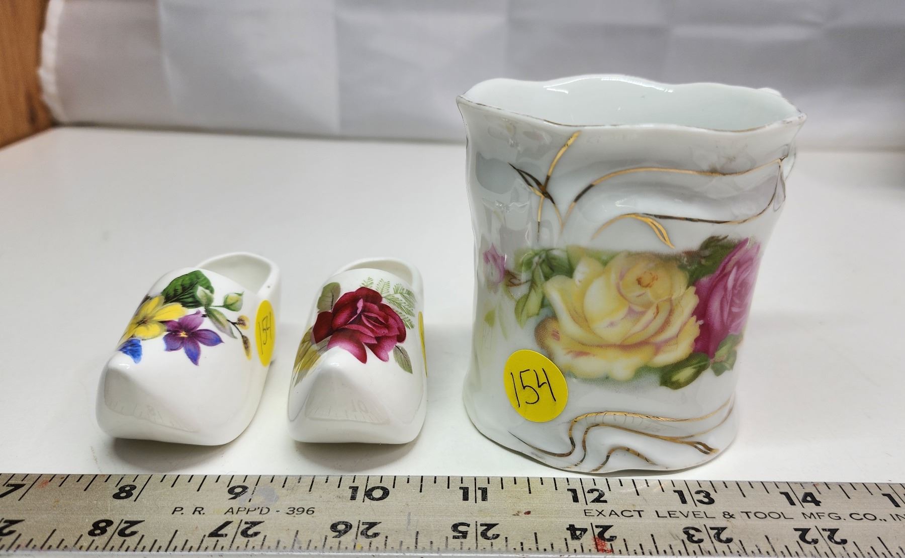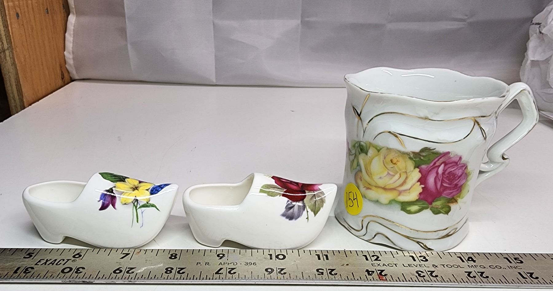 Sanford England Bone China Wooden Shoes & Ornate China Tea Cup