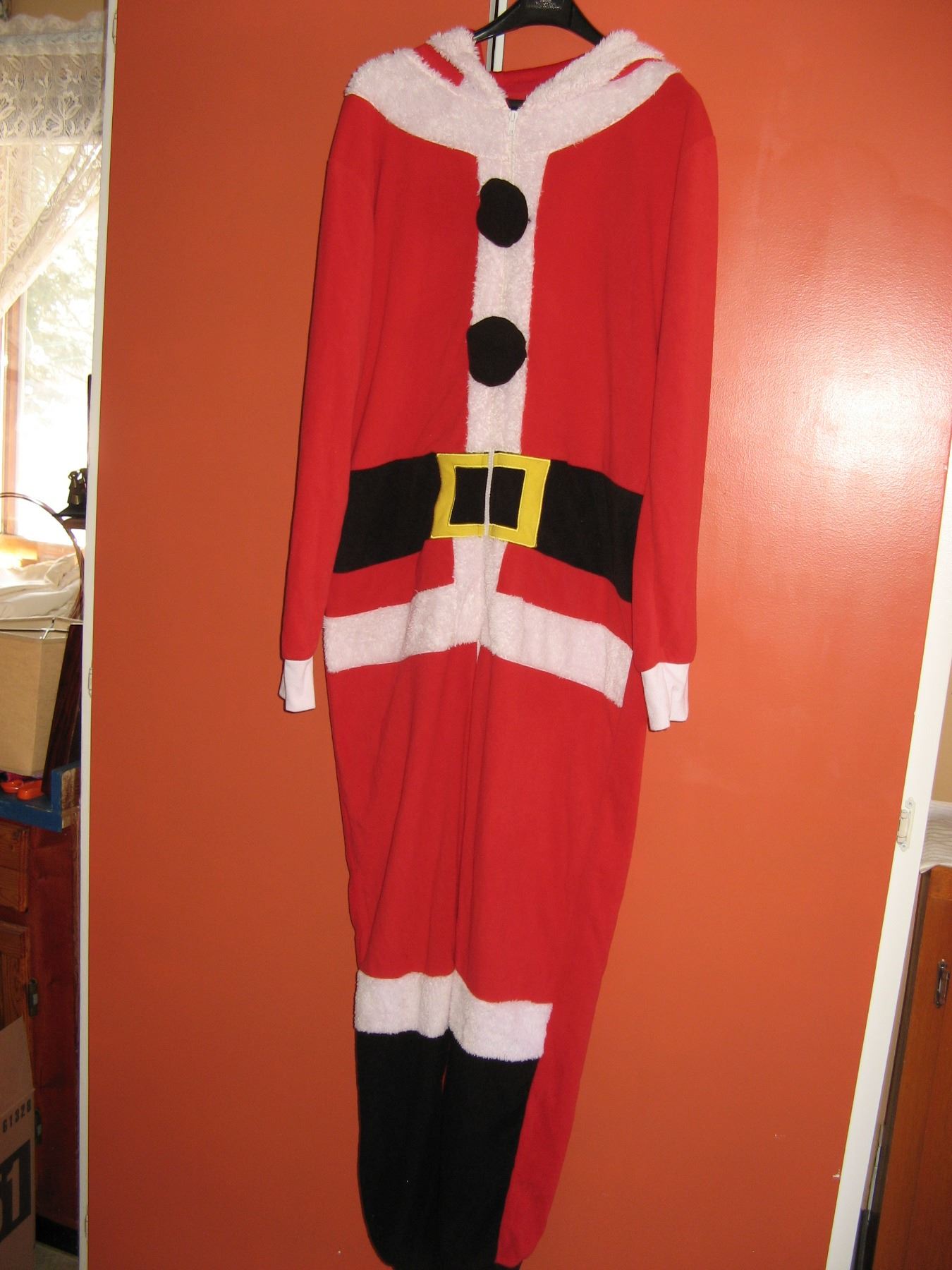 Santa Claus Onesie. Size M. 63" Long. 100% Polyester.
