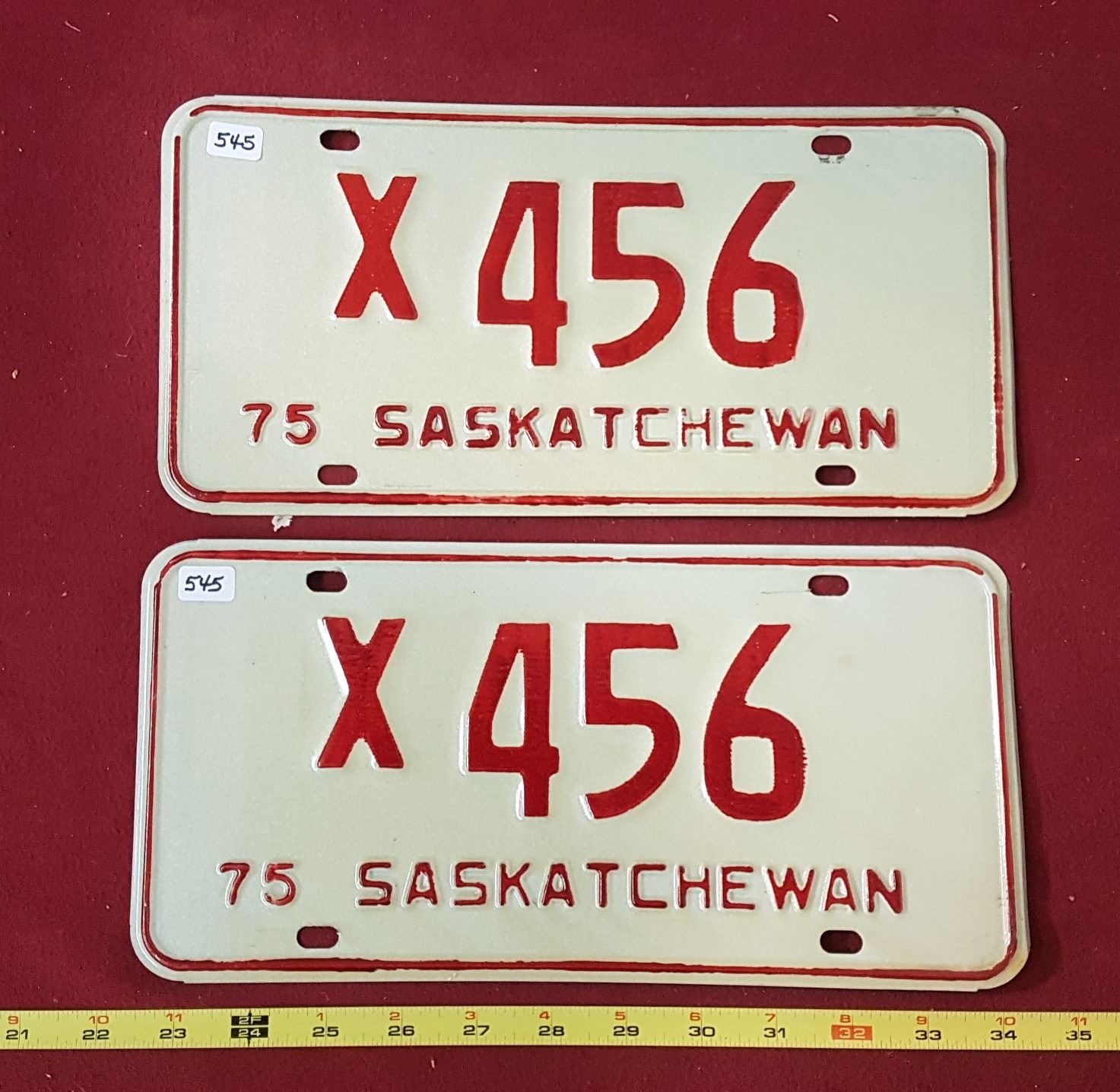 Saskatchewan 1975 X456 Licence Plates Pair