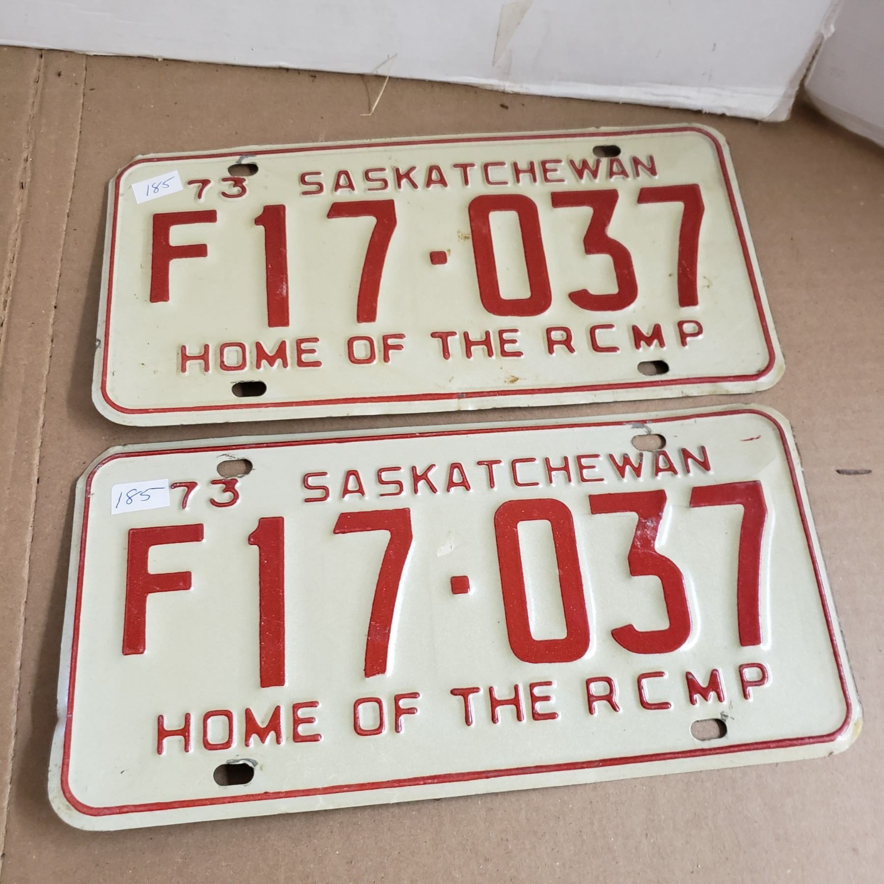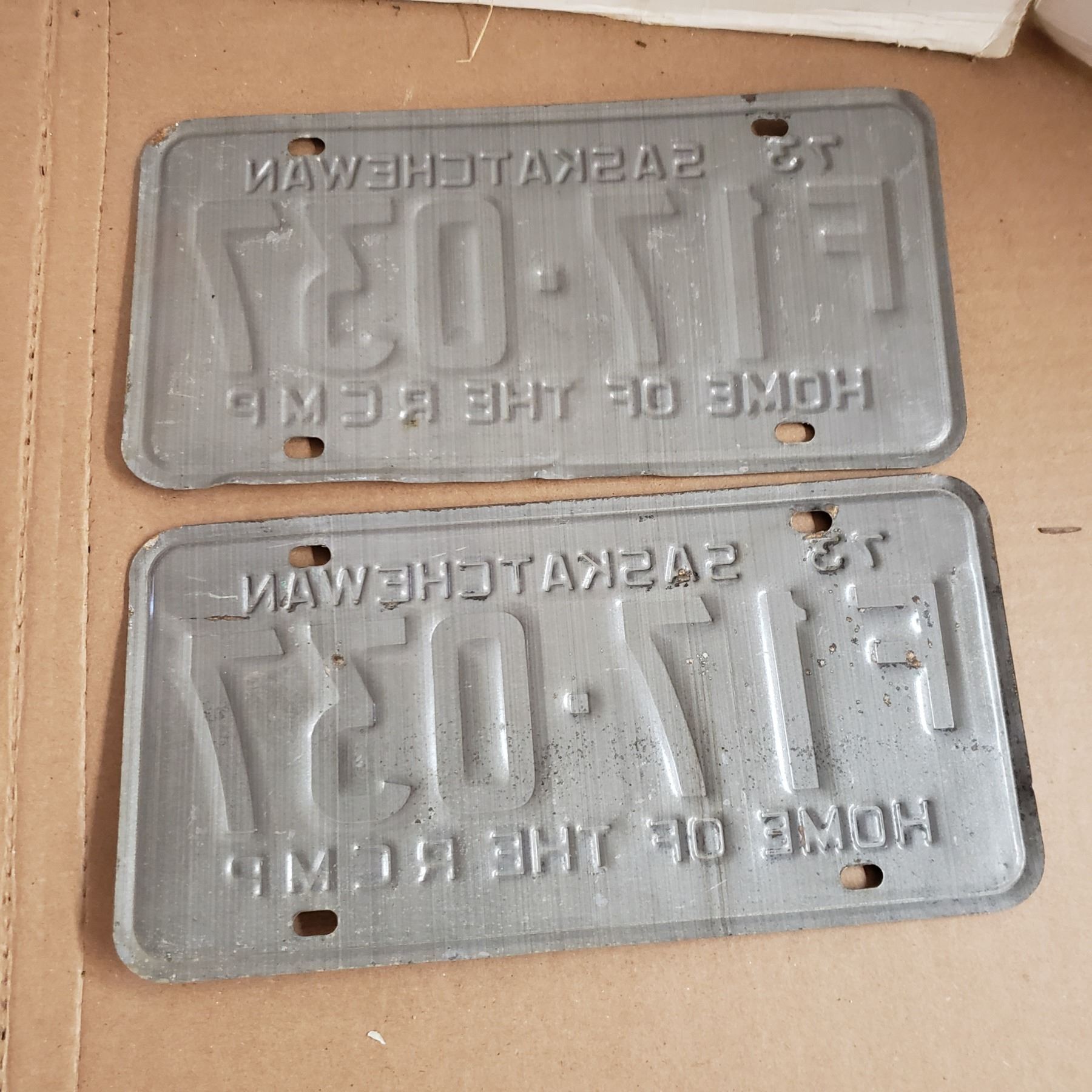 Saskatchewan License Plate 1973 F plate matching pair