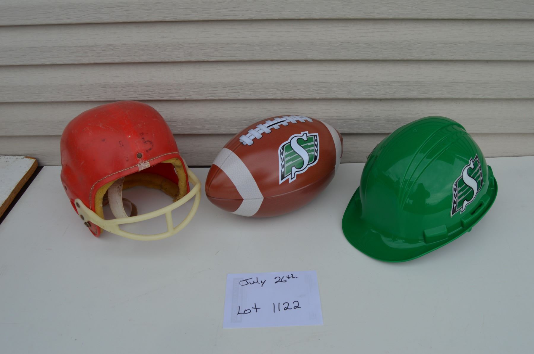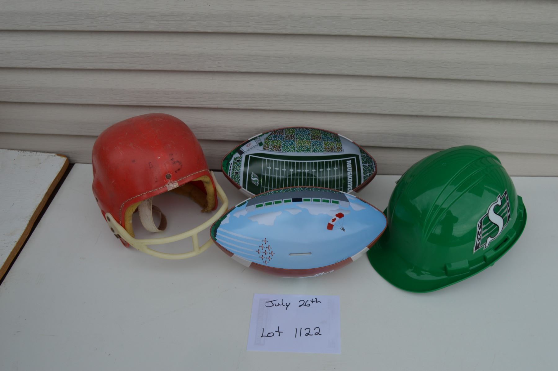 Saskatchewan Roughrider coin bank / Saskatchewan Roughrider helmet / Vintage high school football helmet