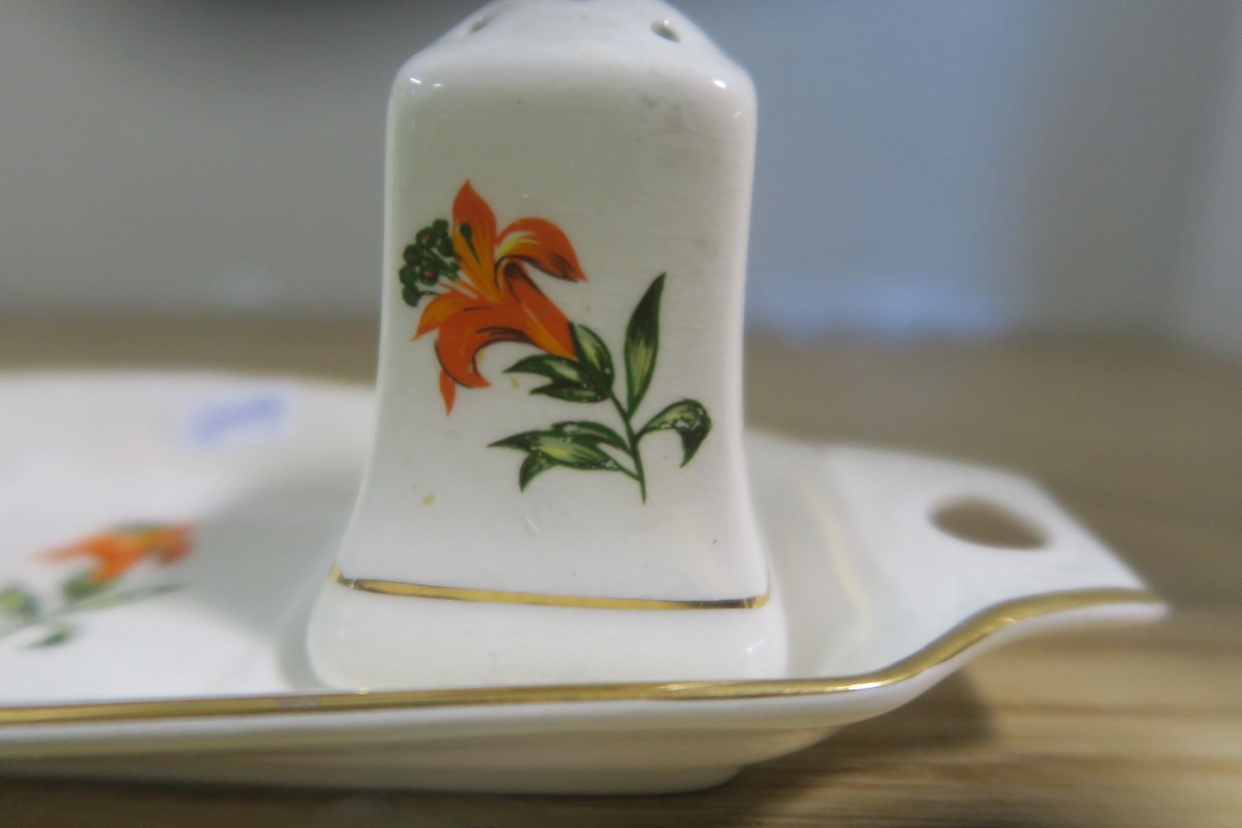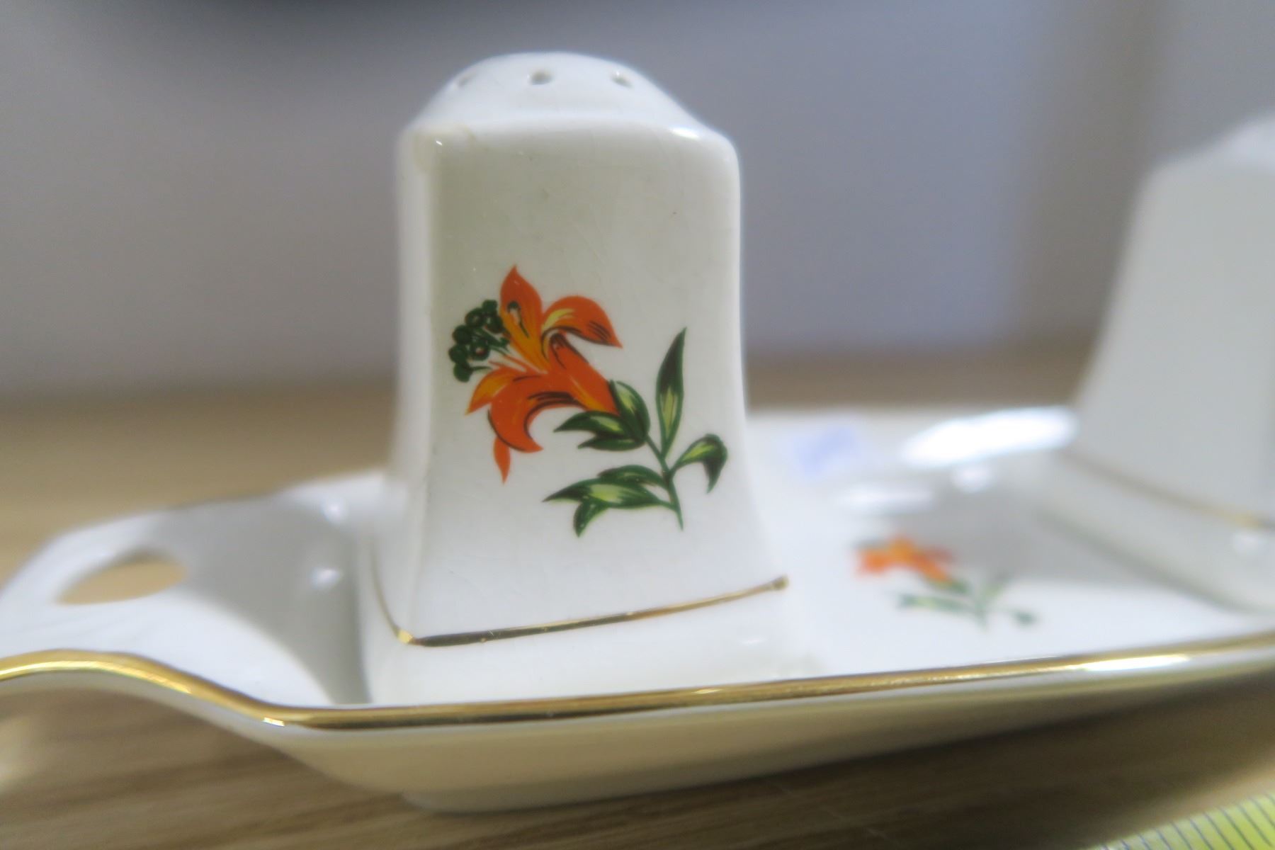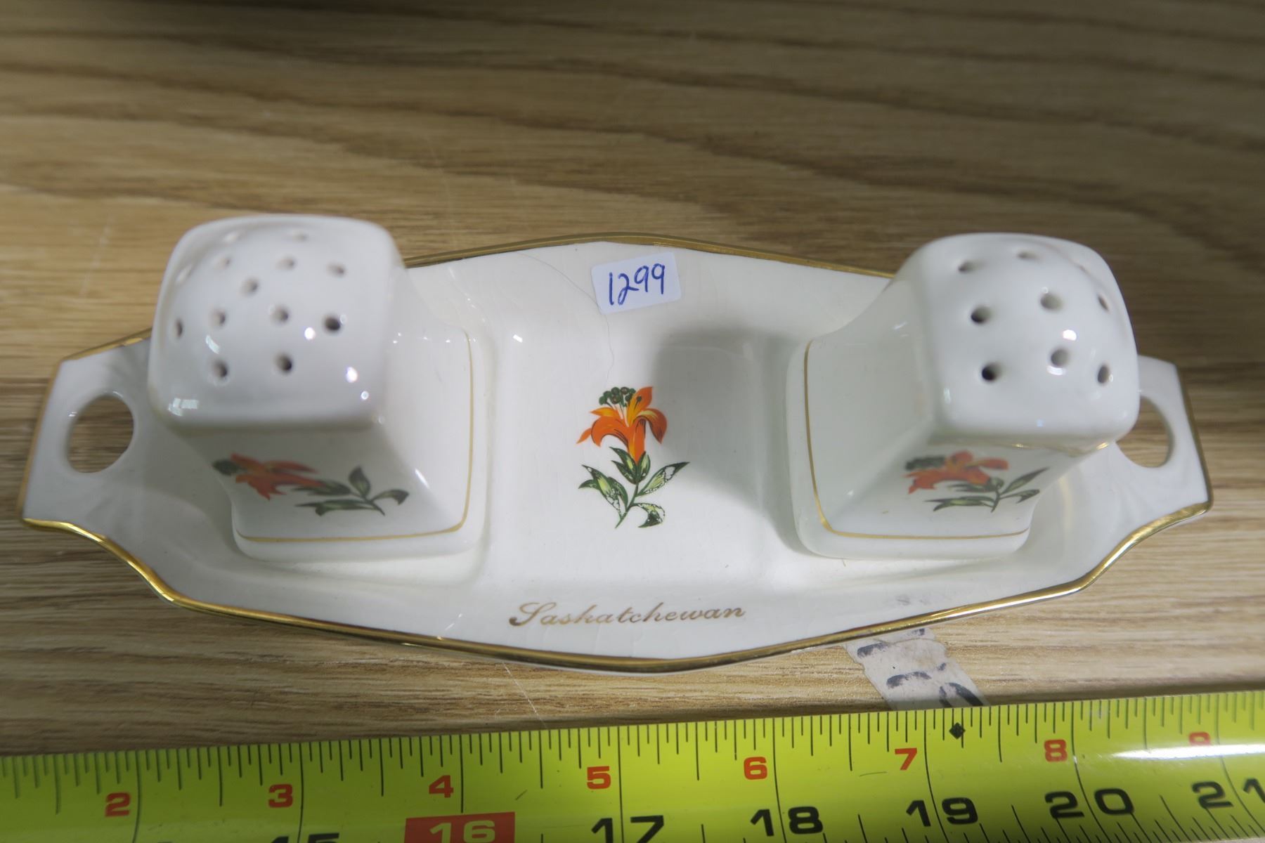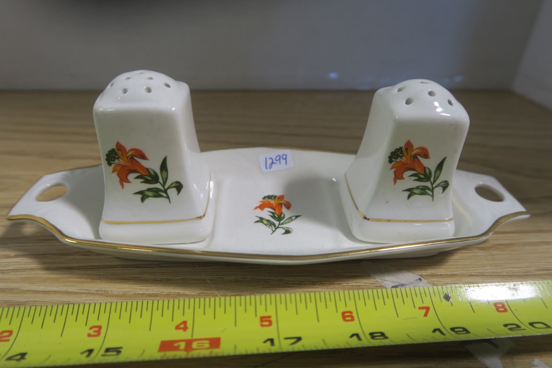 Saskatchewan Tiger Lilly Salt and Pepper Shakers With Dish
