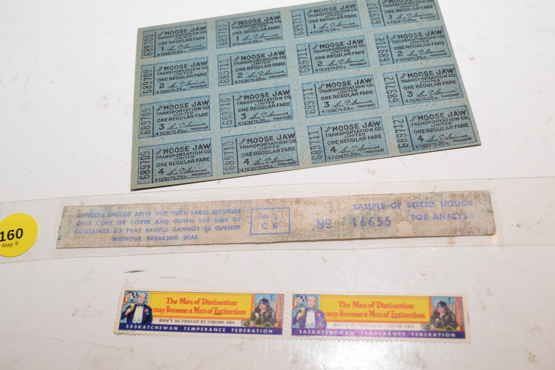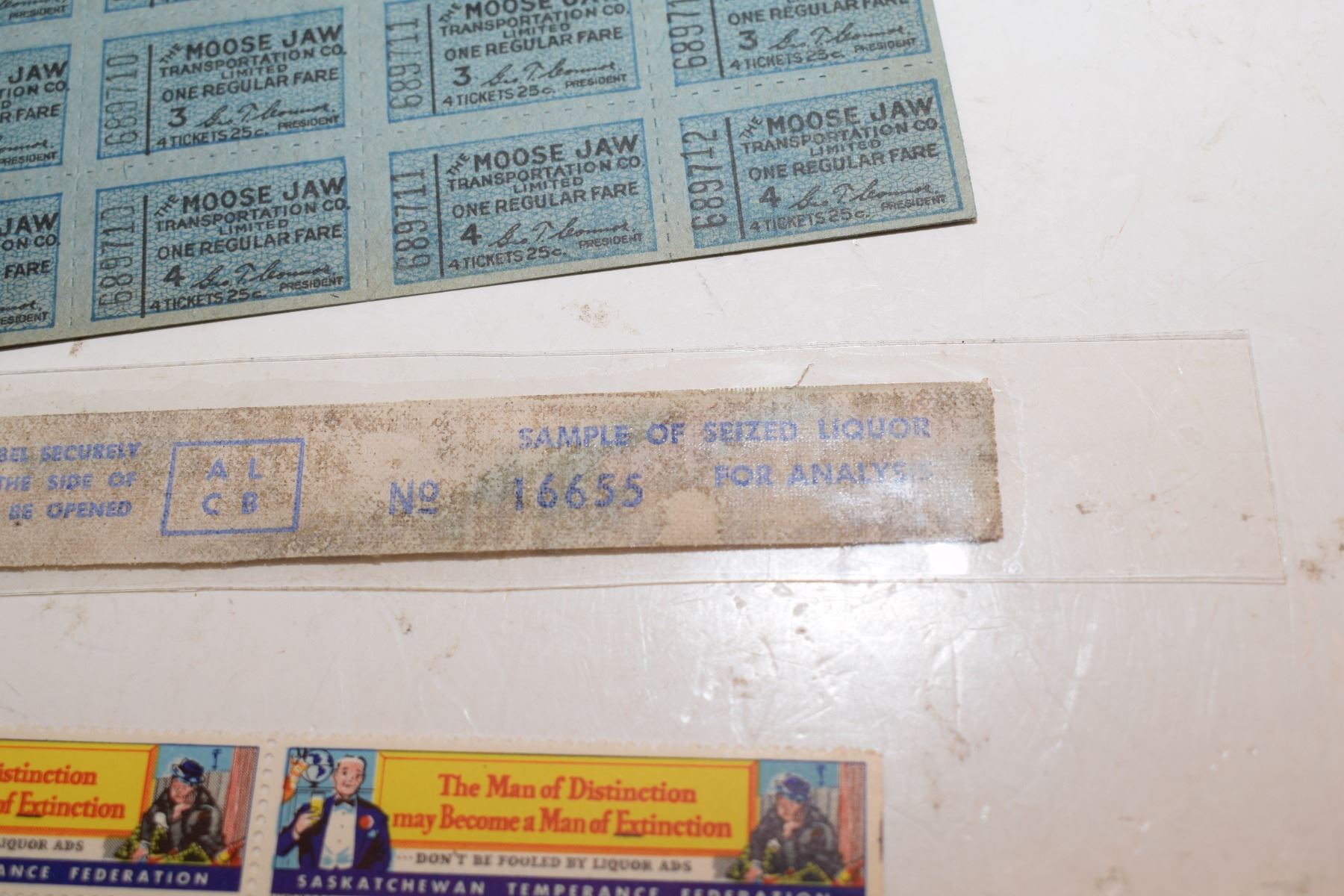 Saskatoon Prohibition Stamps, Seized Liquor Seal, MJ Bus Tickets