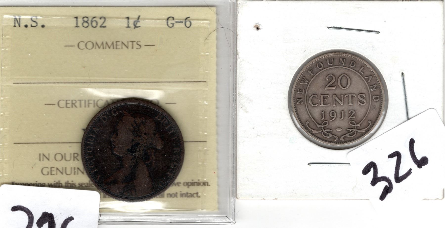Scarce 1862 Nova Scotia One Cent and 1912 Newfoundland 20 cent piece