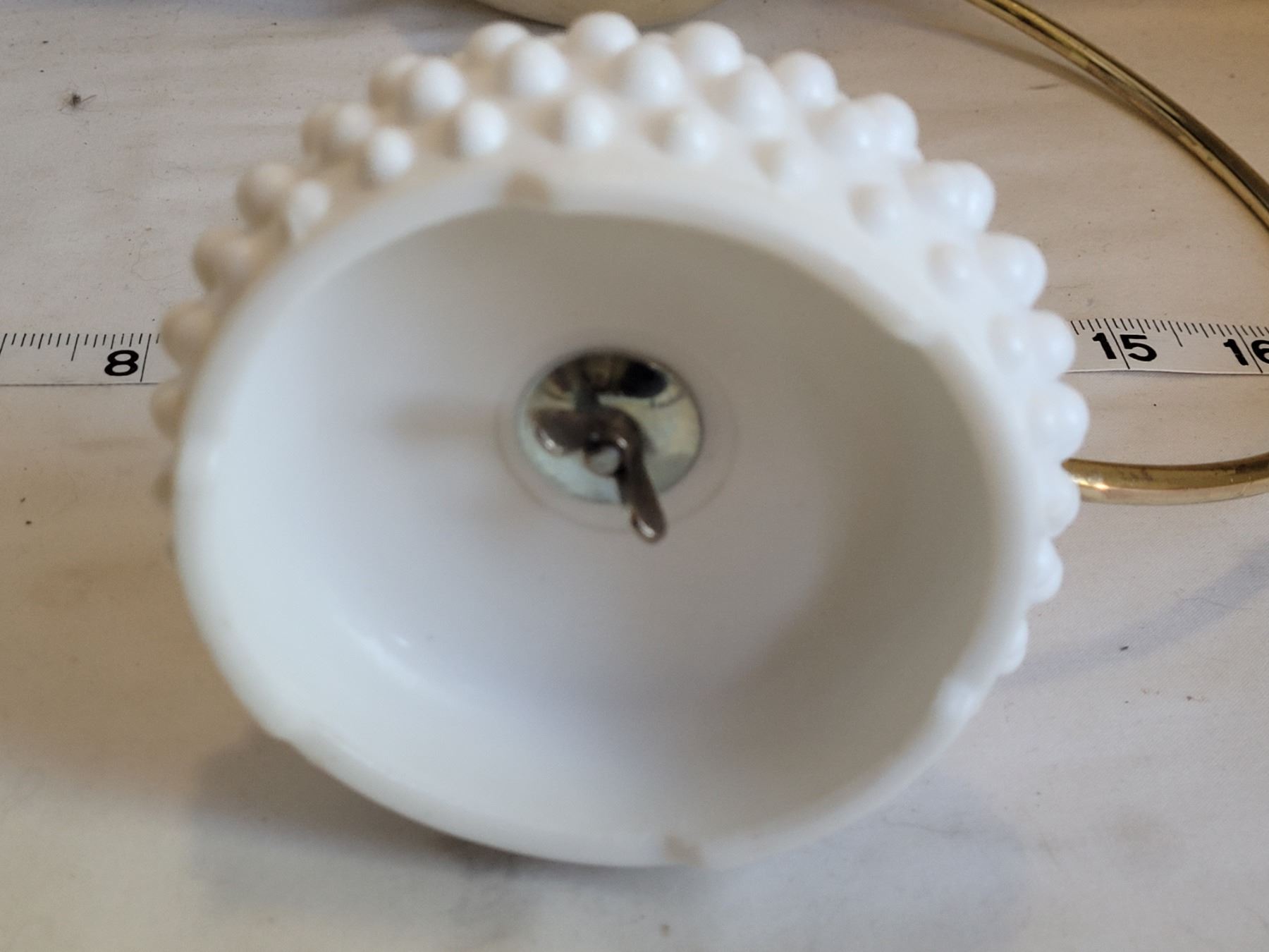 Scarce 1960's Fenton Hobnail milk glass & brass table top plant /candle hanger.