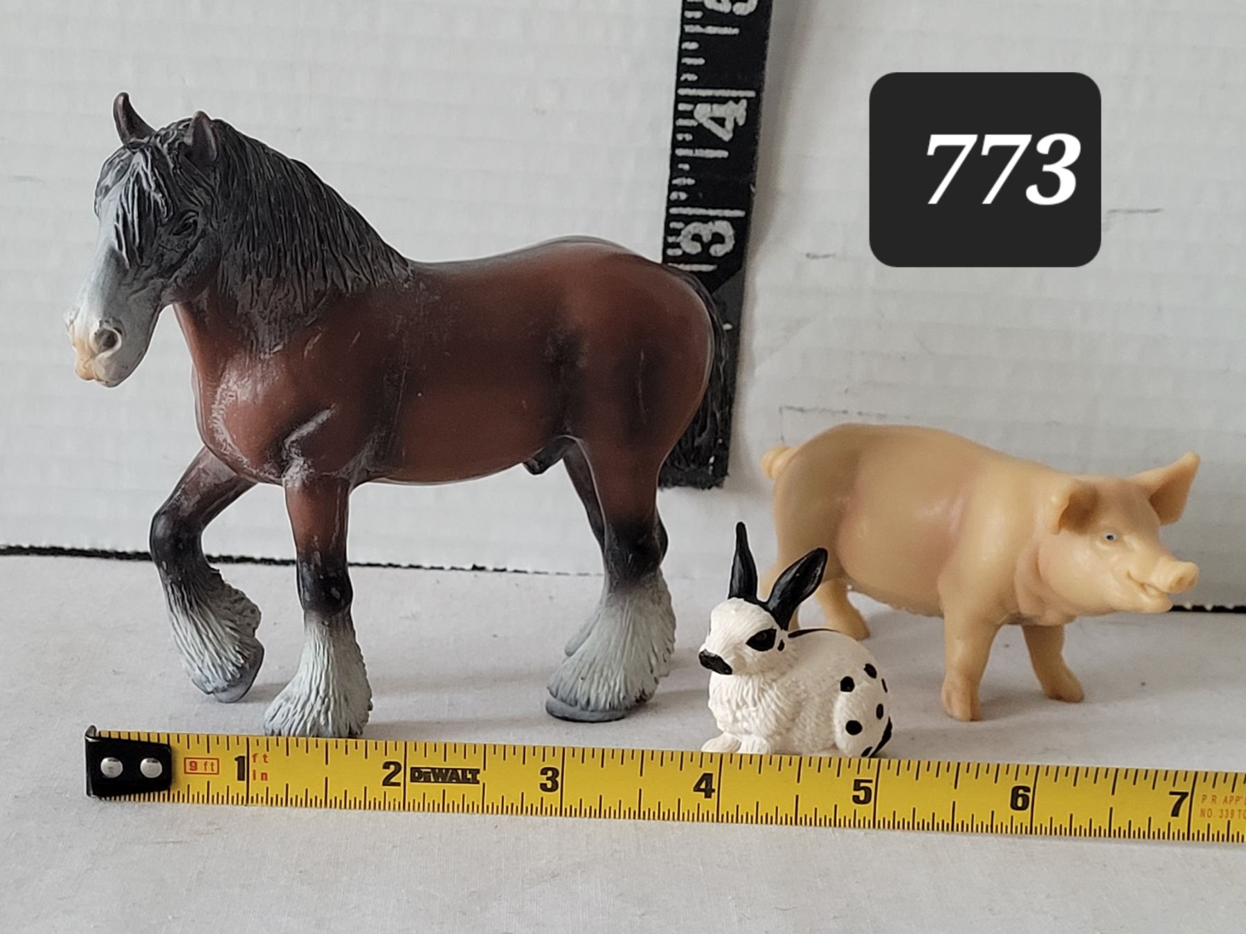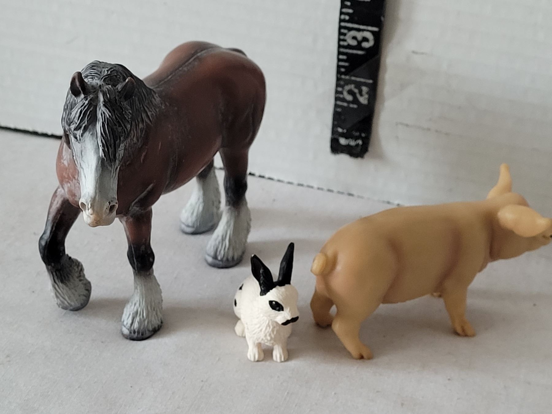 Schleich Germany 2000 Clydesdale shire stallion, 1995 sow pig & rabbit.