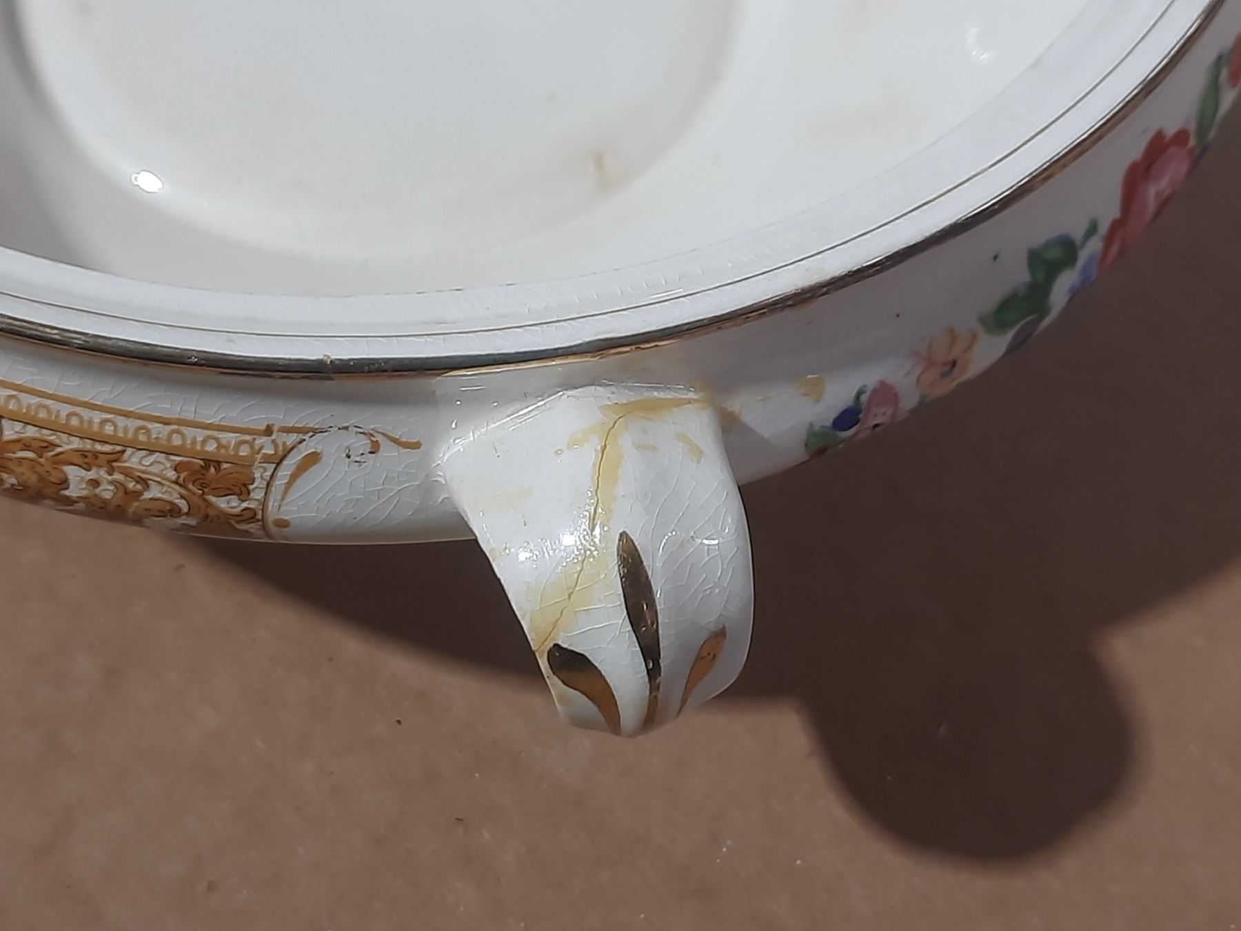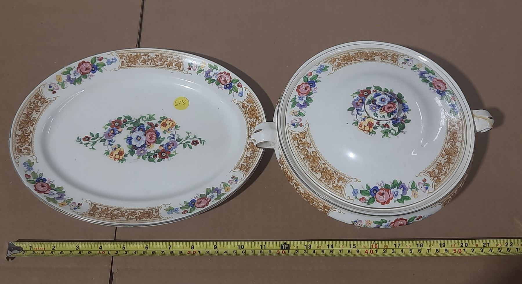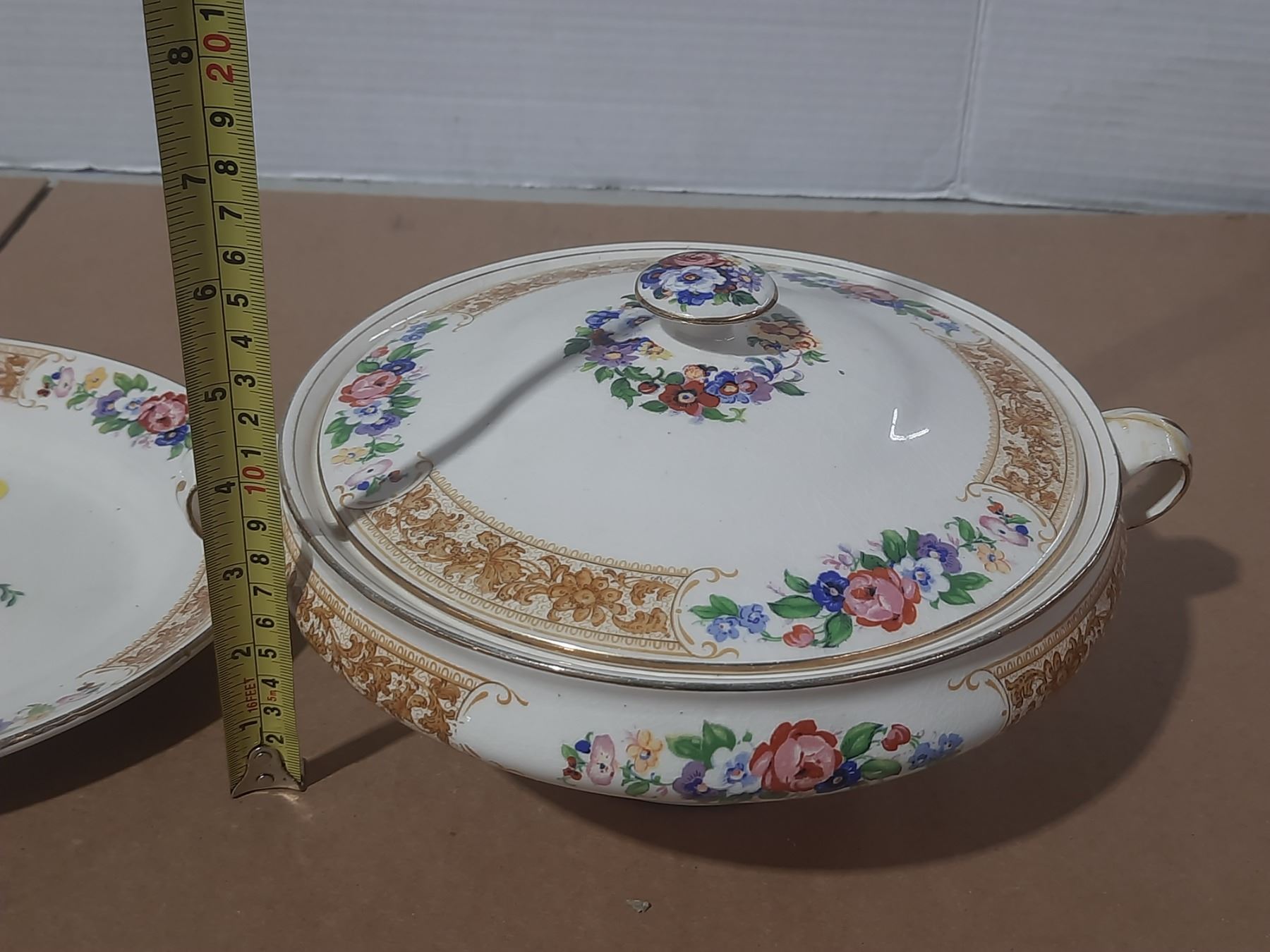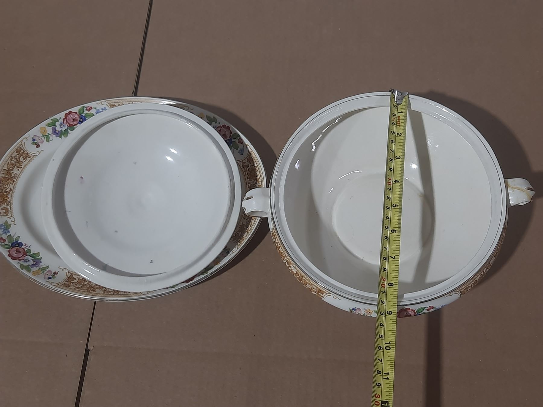 "Scotch Ivory" Bowl with Lid and Serving Platter (Old). (Handle Was Glued)