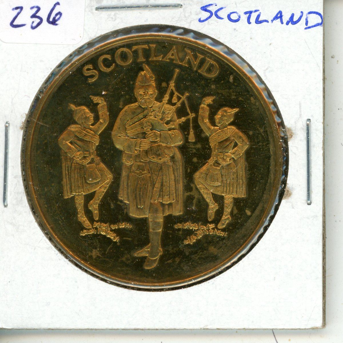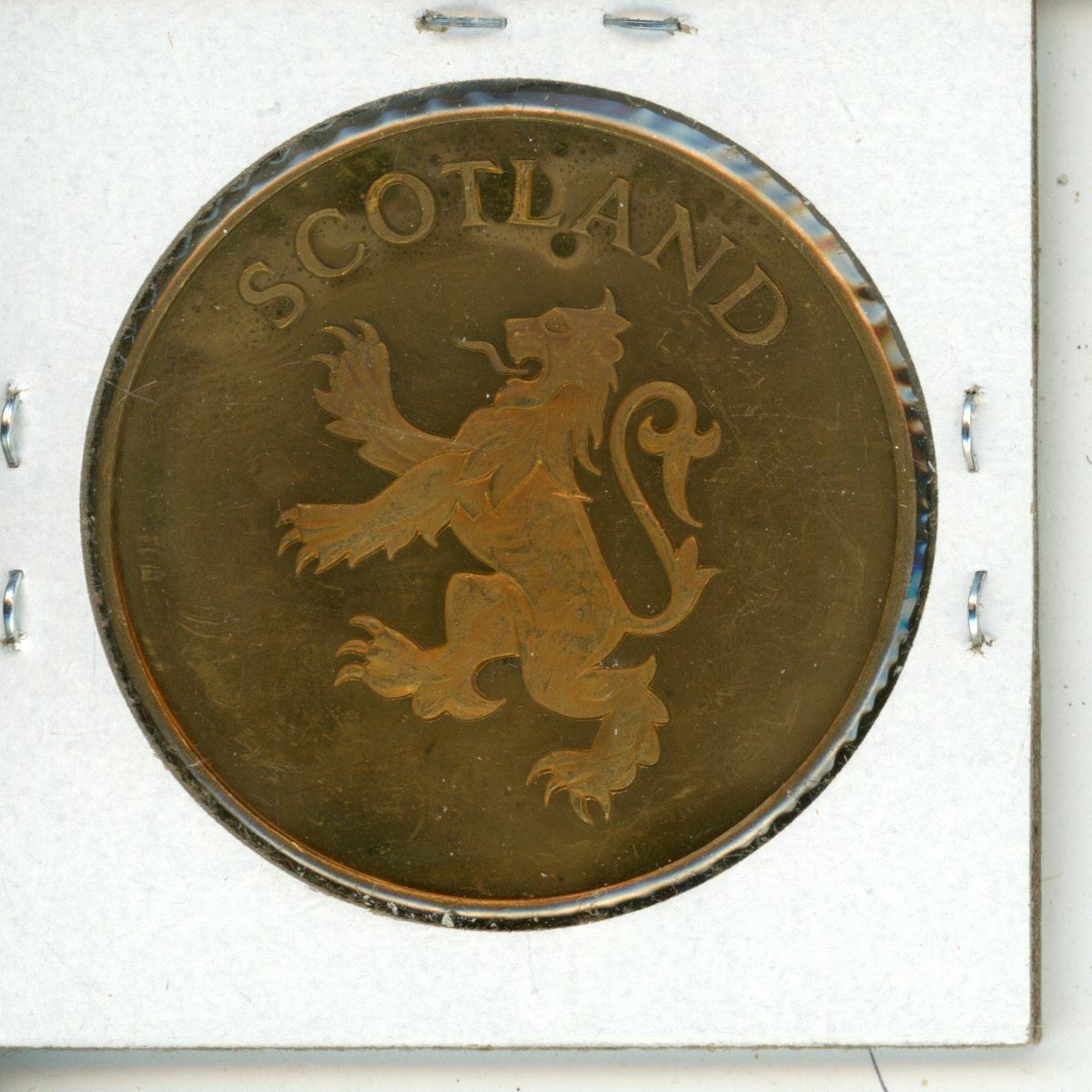 Scotland. Bronze medal depicting piper & 2 dancers/Scottish lion. Uncirculated.