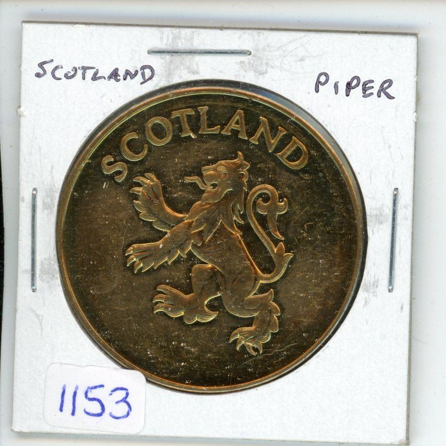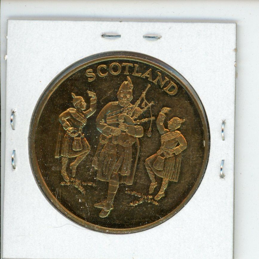 Scotland brass medal. Lion/Piper with 2 Highland Dancers. Uncirculated.