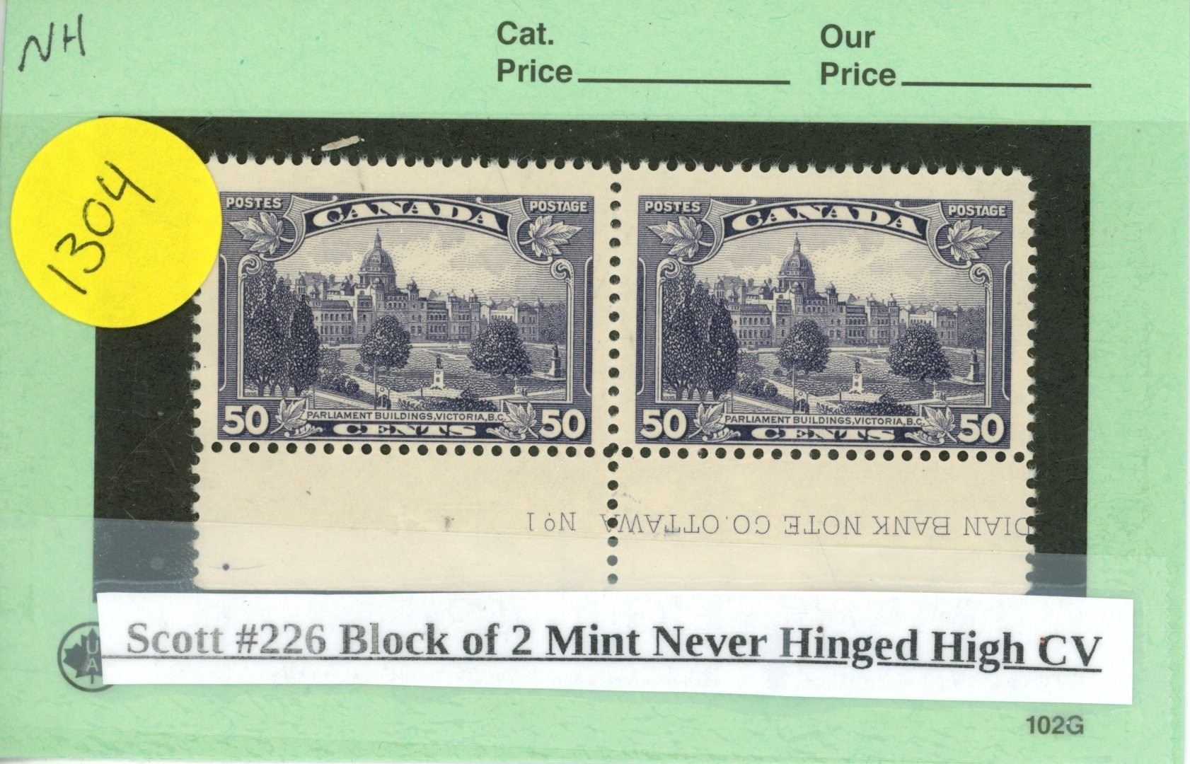 Scott #226 block of 2 Mint never hinged high CV stamp