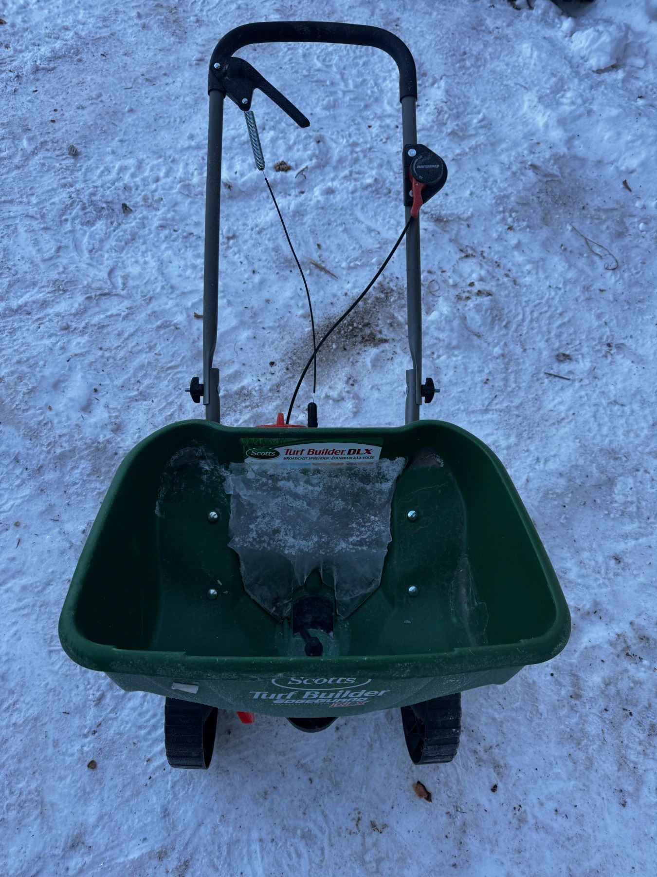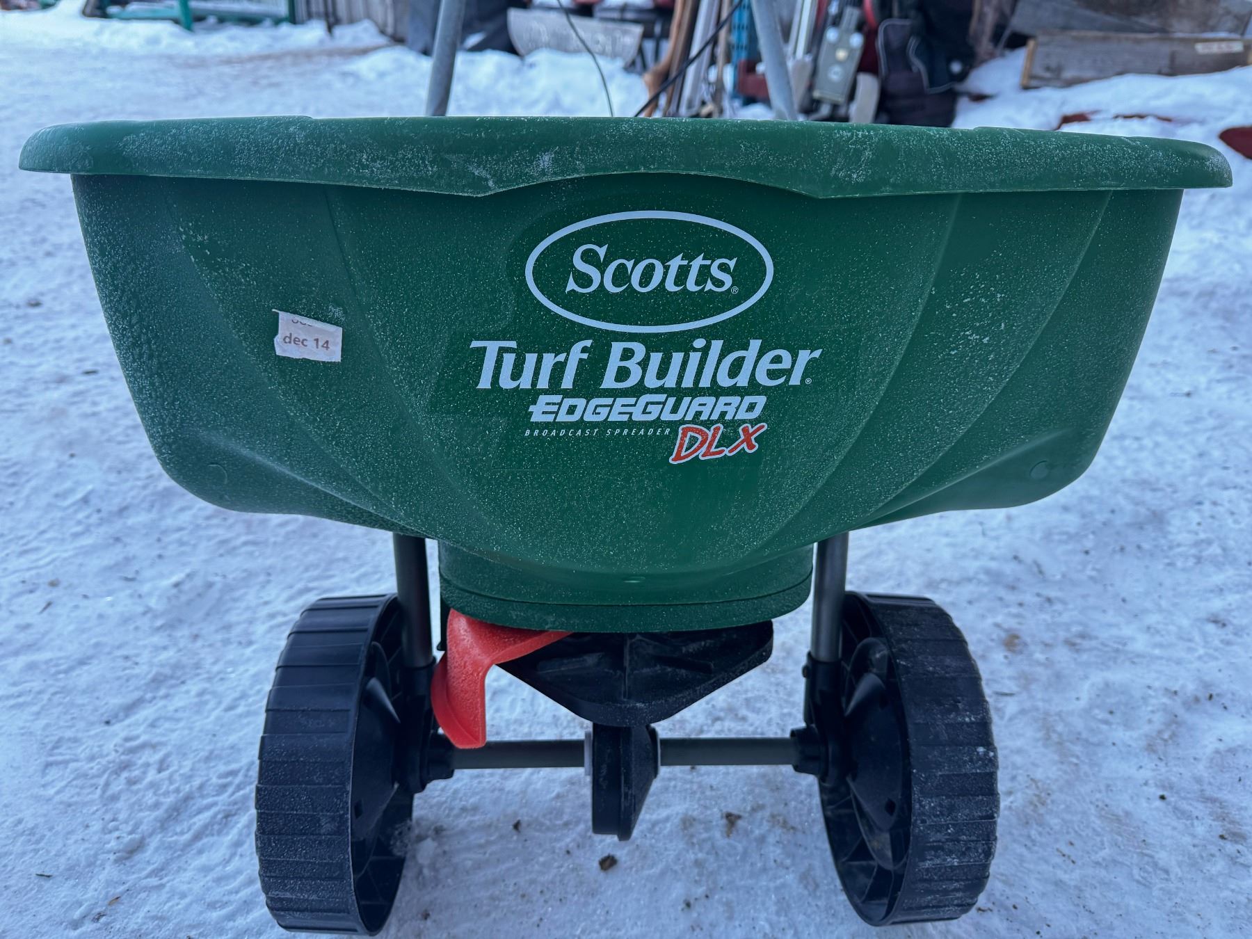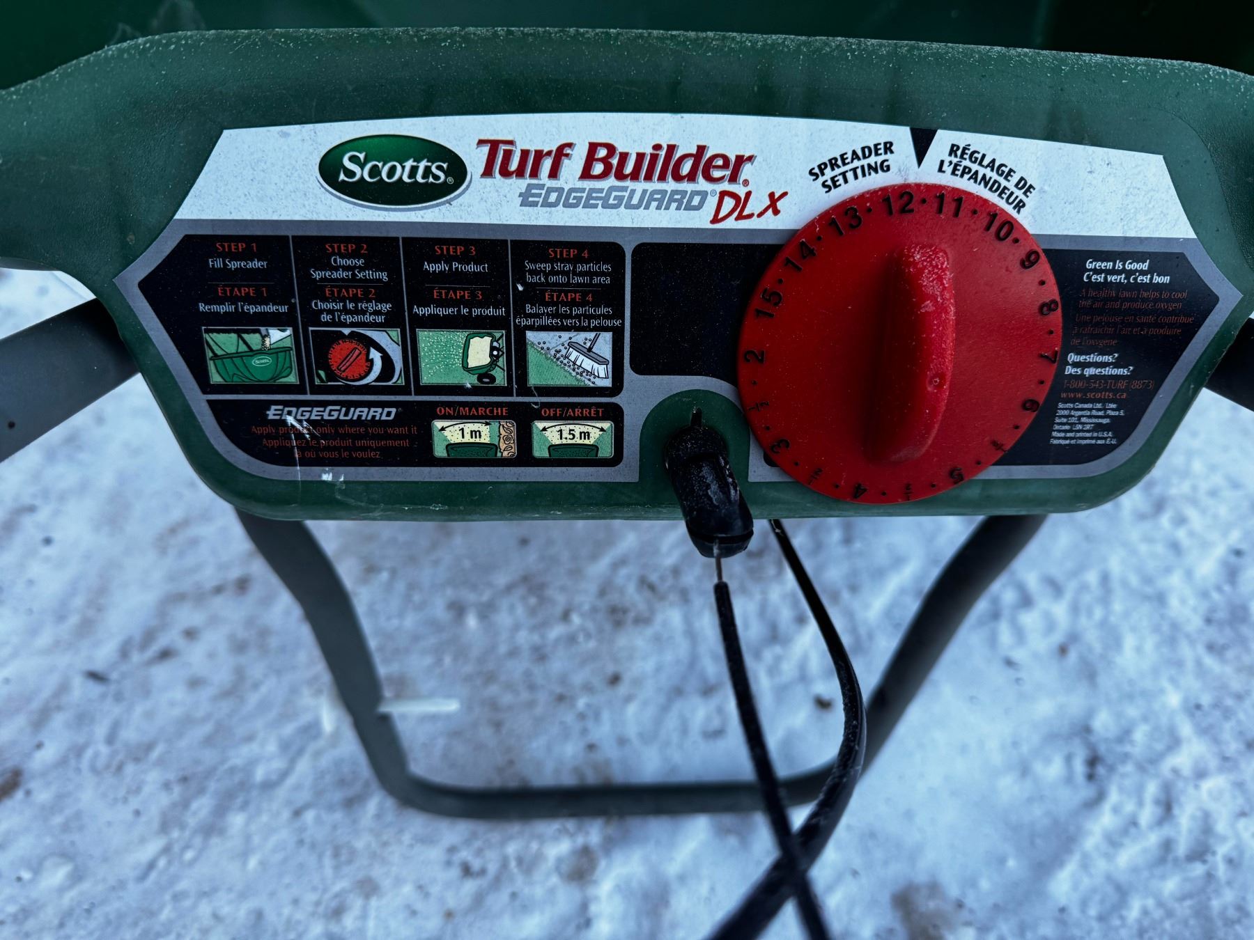 Scott's Turf Builder EdgeGuard DLX Broadcast Spreader.