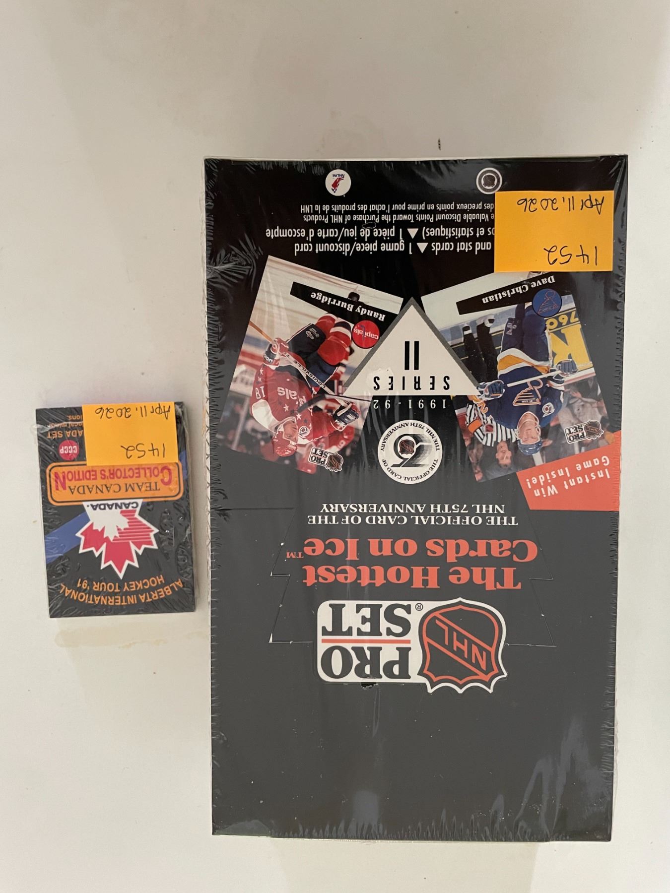 Sealed box of 1991-92 pro set series 2 hockey cards and 1991 set of team canada hockey tour cards sealed