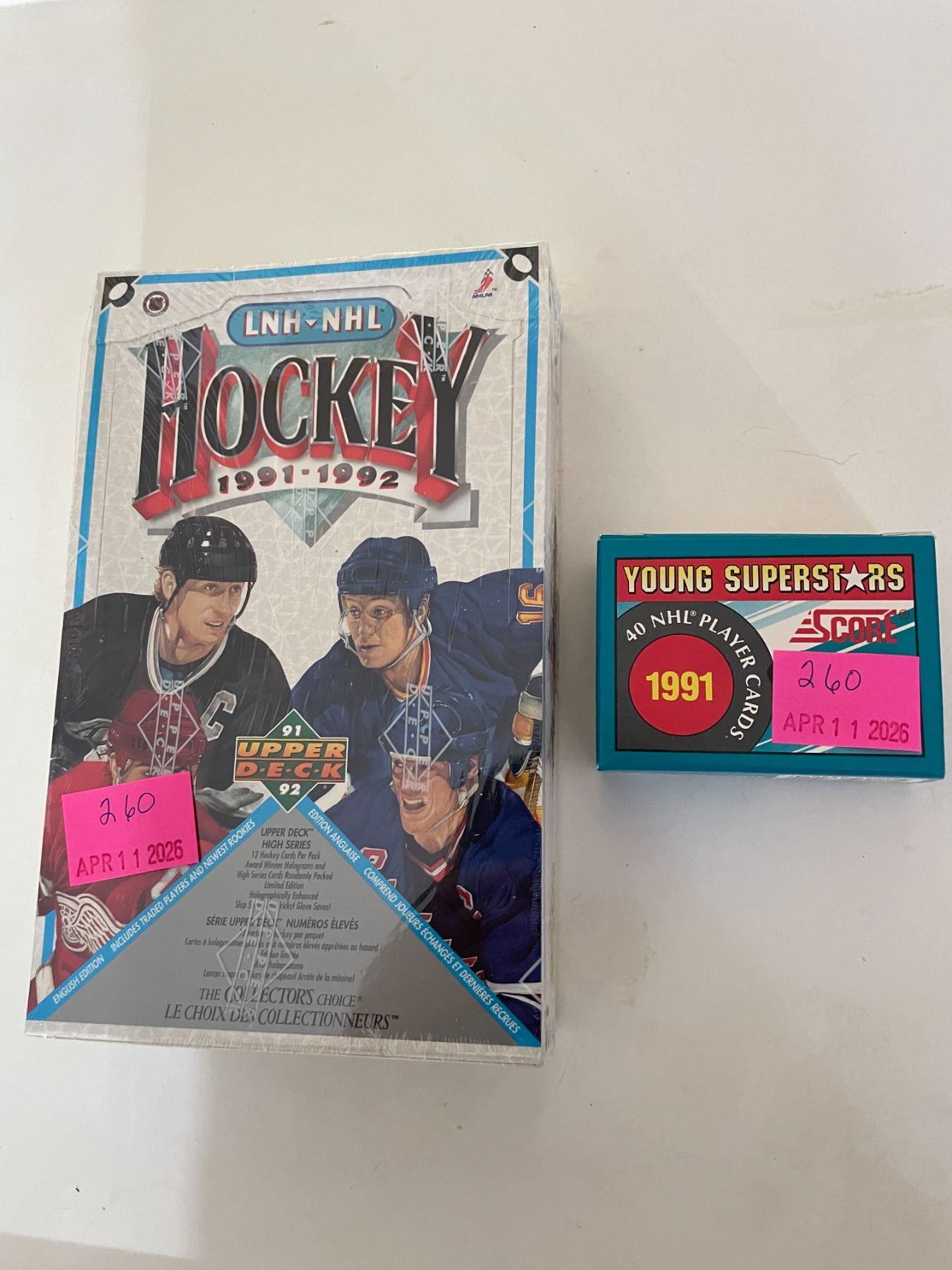 Sealed box of 1991-92 upper deck hockey cards english edition and box of 40 nhl young superstars 1991