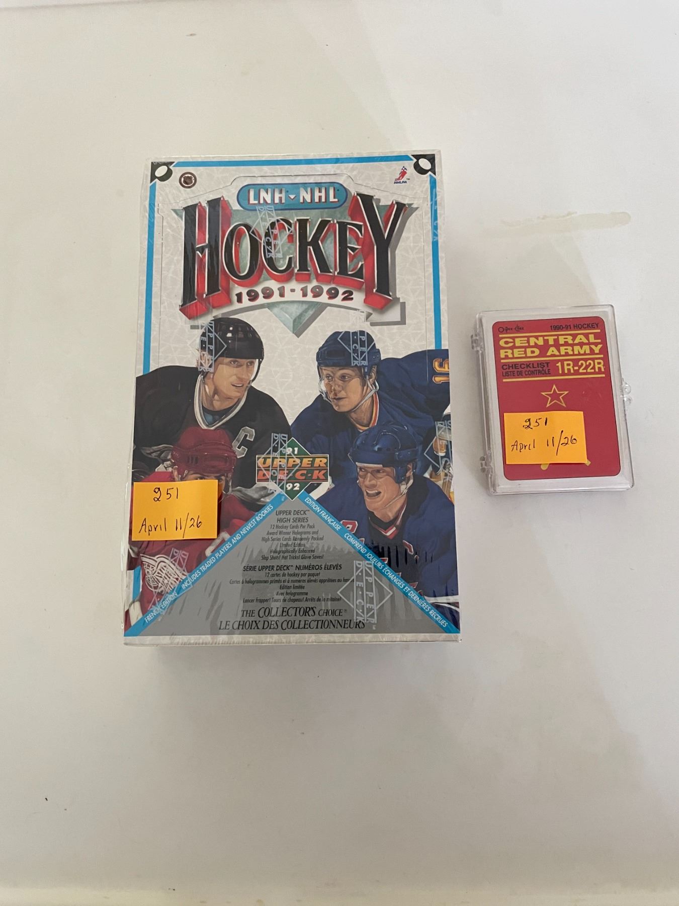 Sealed box of 91-92 upper deck hockey cards- french edition and case of 90-91 central red army cards