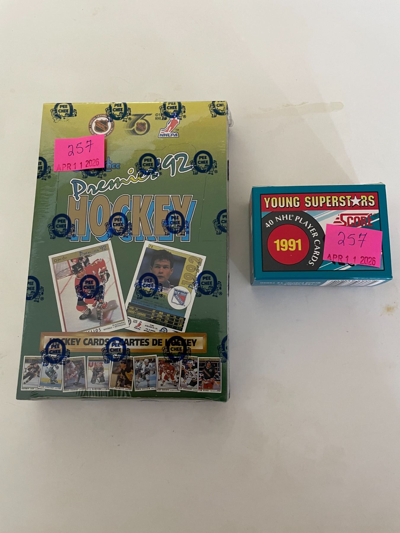 Sealed box of O-PEE-CHEE premier 1992 hockey cards and box of 40 young superstars of nhl hockey