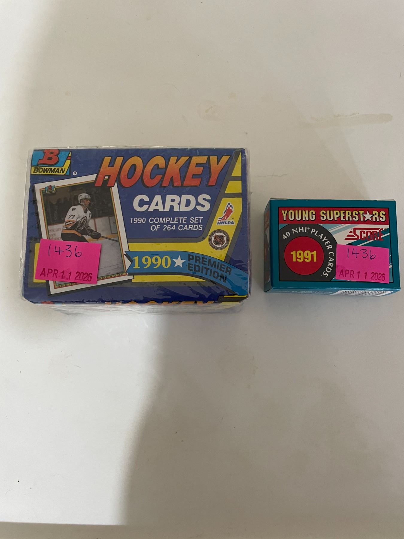 Sealed set of 1990 bowman hockey cards premier edition and box of 40 nhl superstars 1991 score