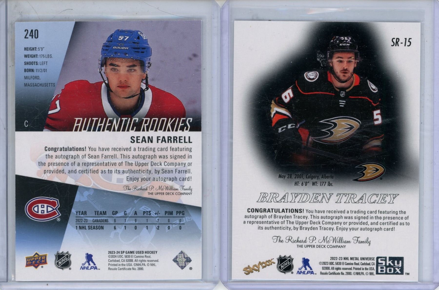 Sean Farrell and Brayden Tracey Rookies Autograph Cards.