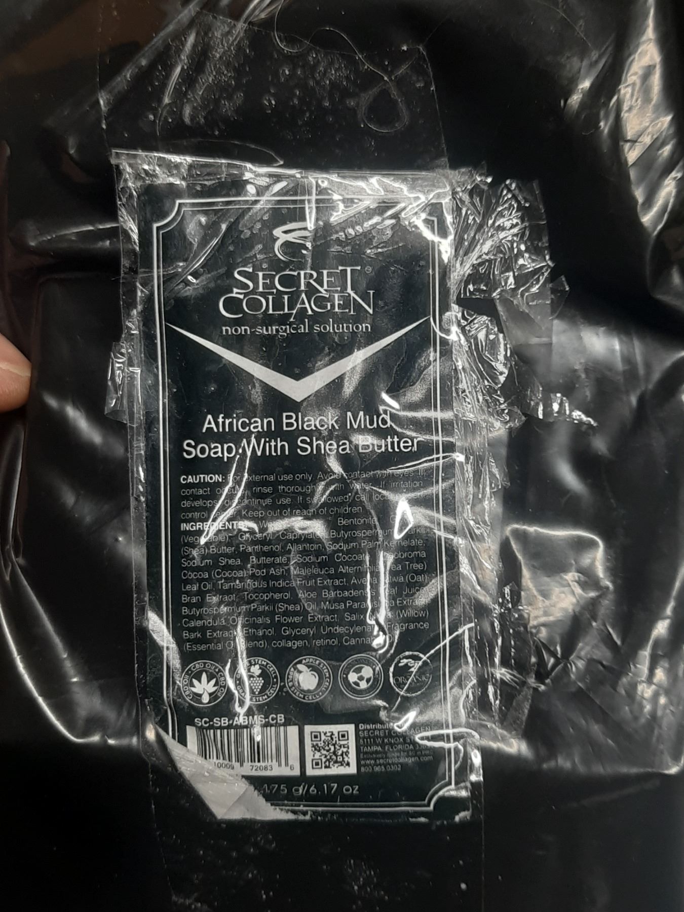 Secret Collagen African Black Mud Soap With Shea Butter. (Three Bars Inside)