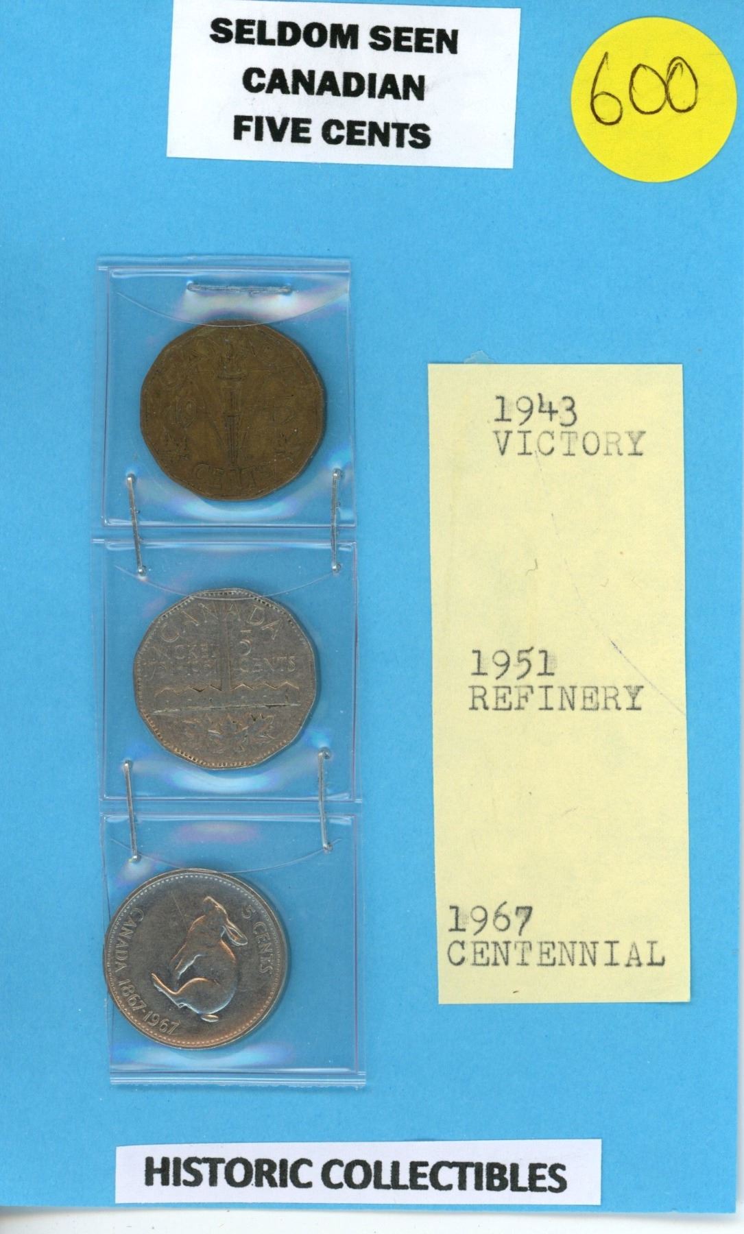 Seldom Seen Canadian 5¢ 1943, 1951 & 1967