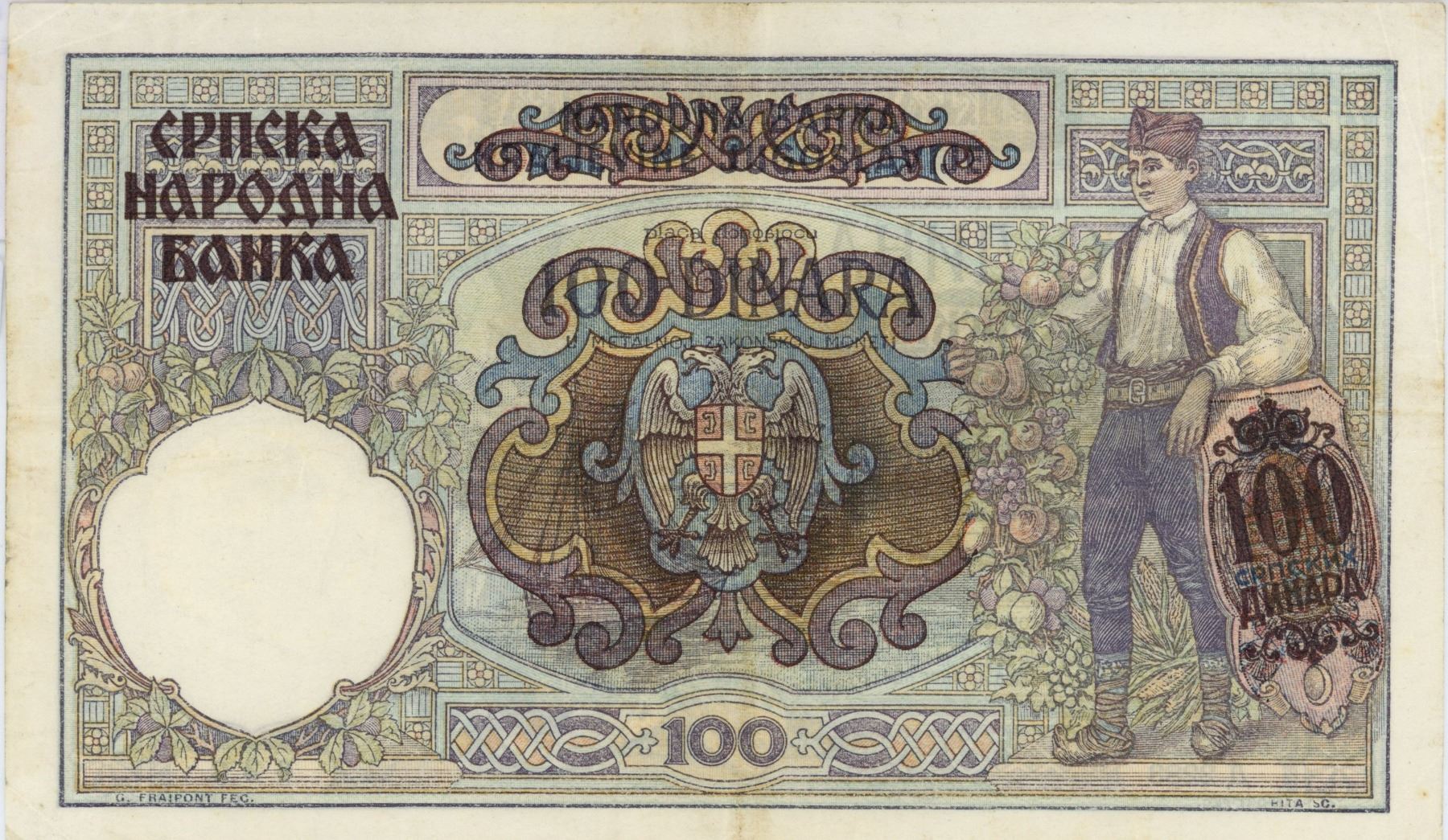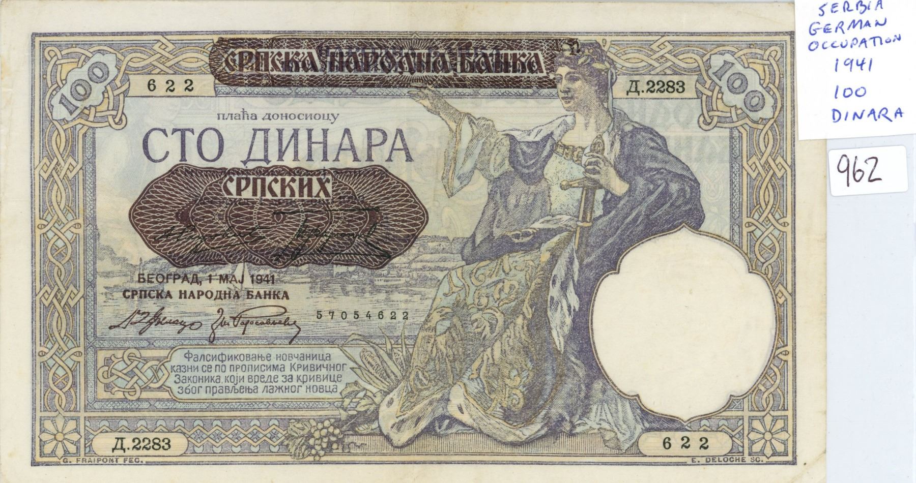 Serbia under German Occupation during World War II. 1941 100 Dinara. VF-30.