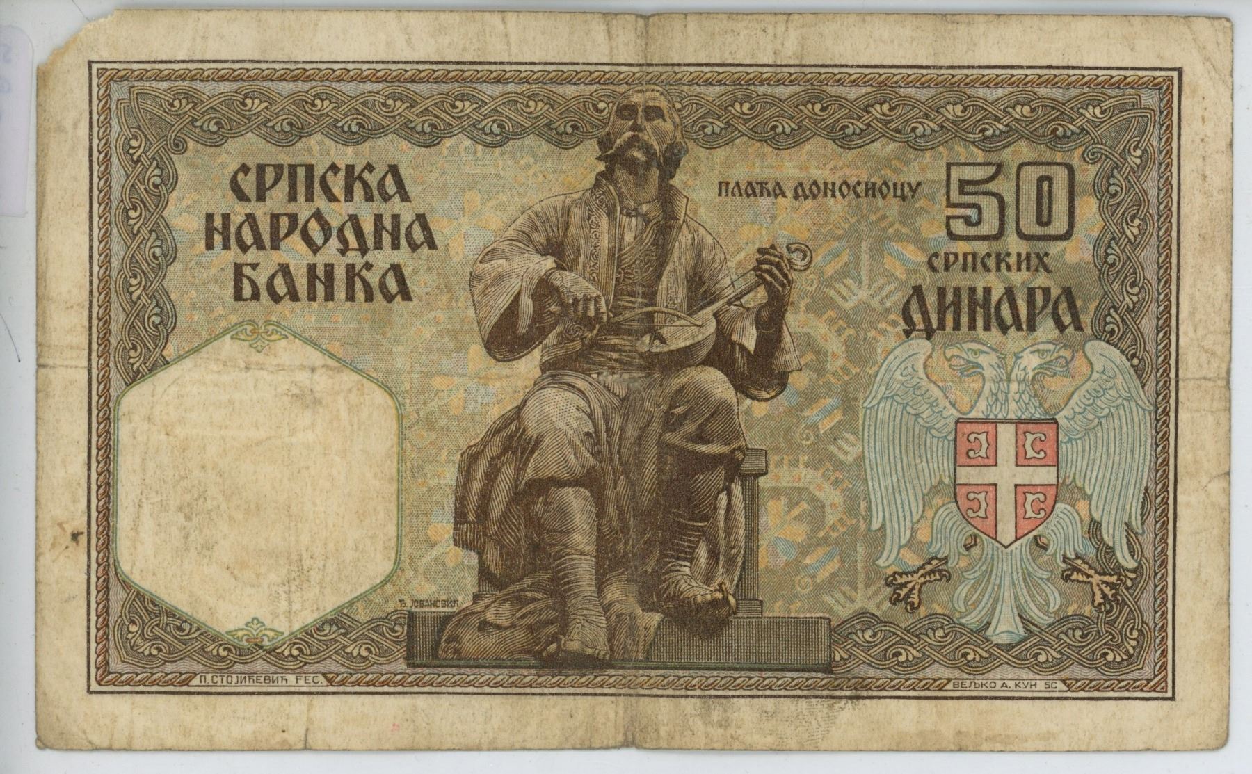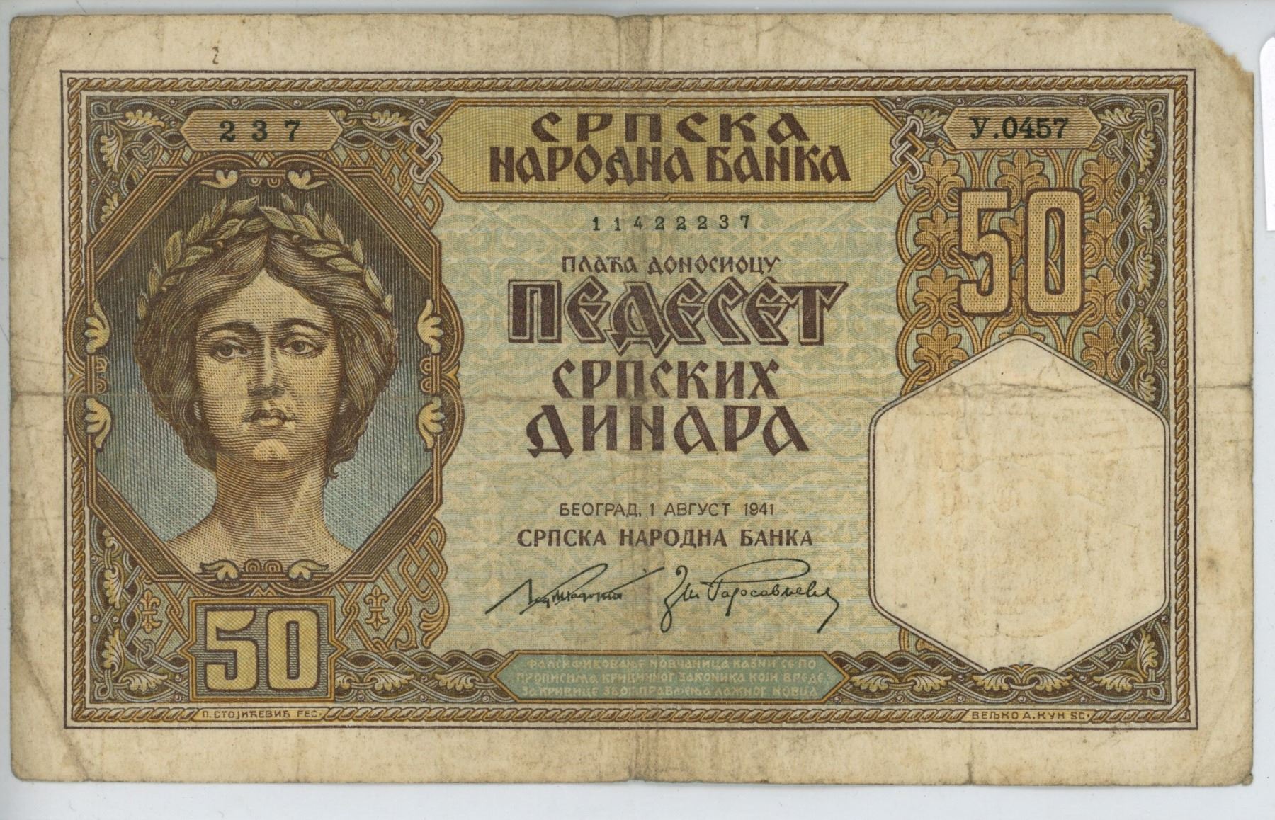Serbia under German Occupation during World War II. 1941. 50 Dinara. VG.