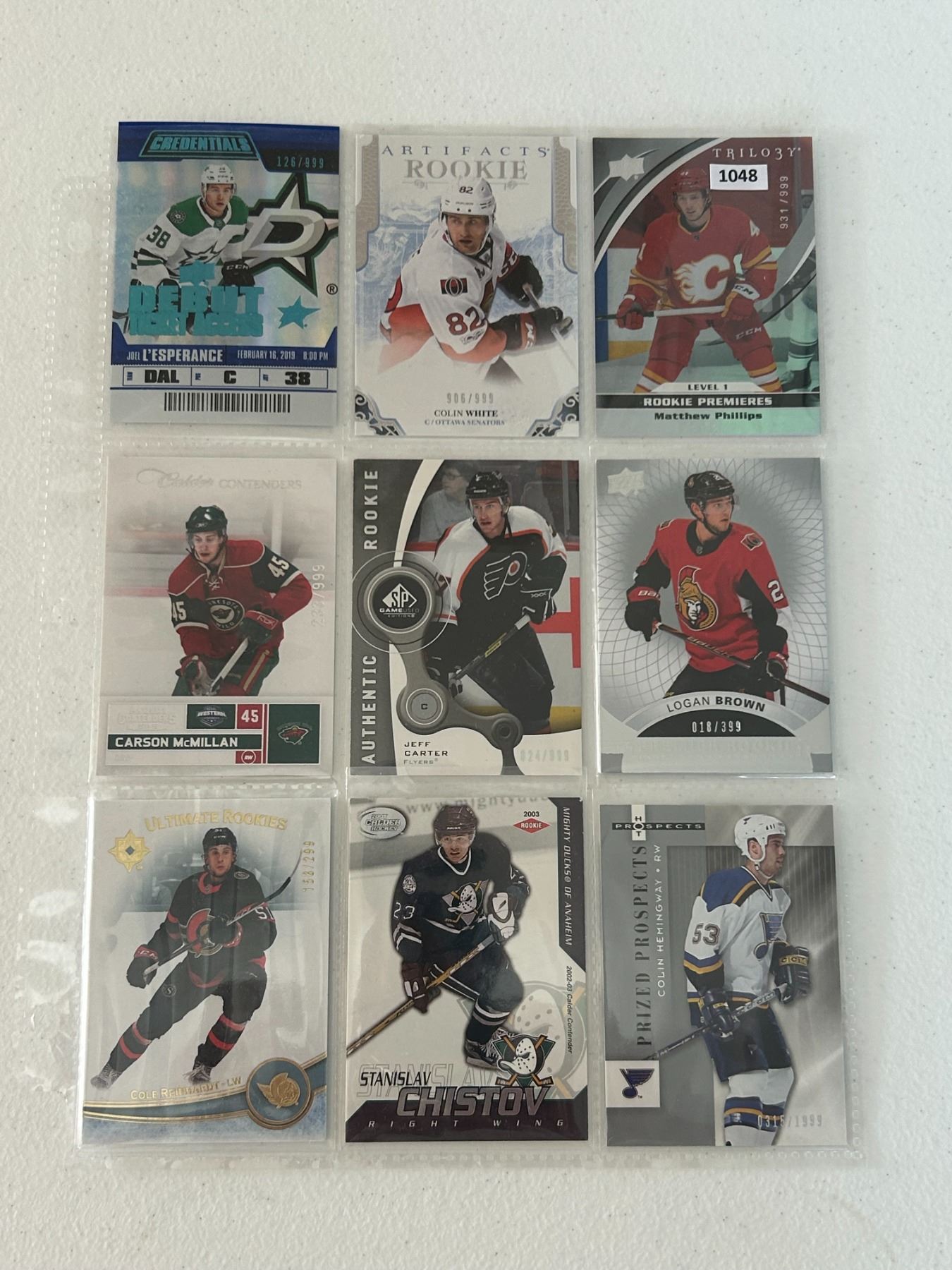 Serial Numbered Rookie Cards - 1 Sheet (9 Hockey Cards)
