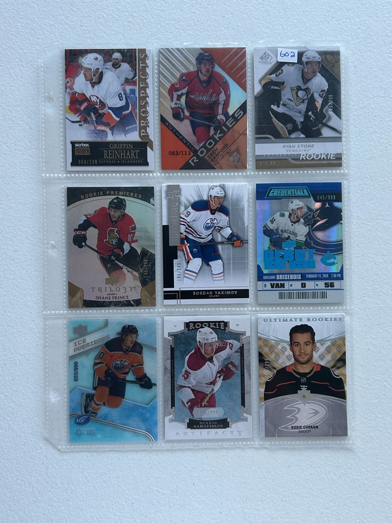 Serial Numbered Rookie Cards - 1 Sheet (9 Hockey Cards)