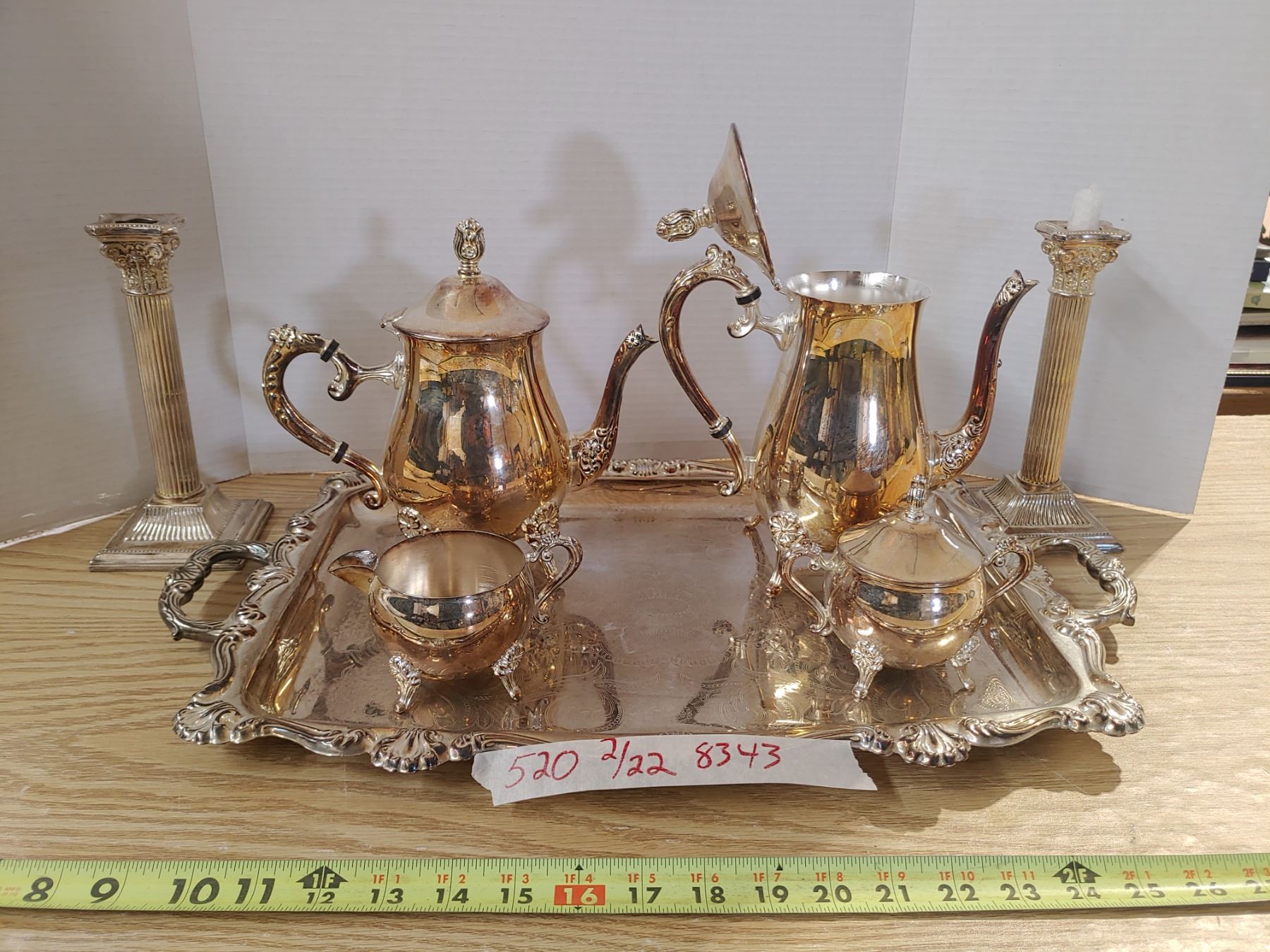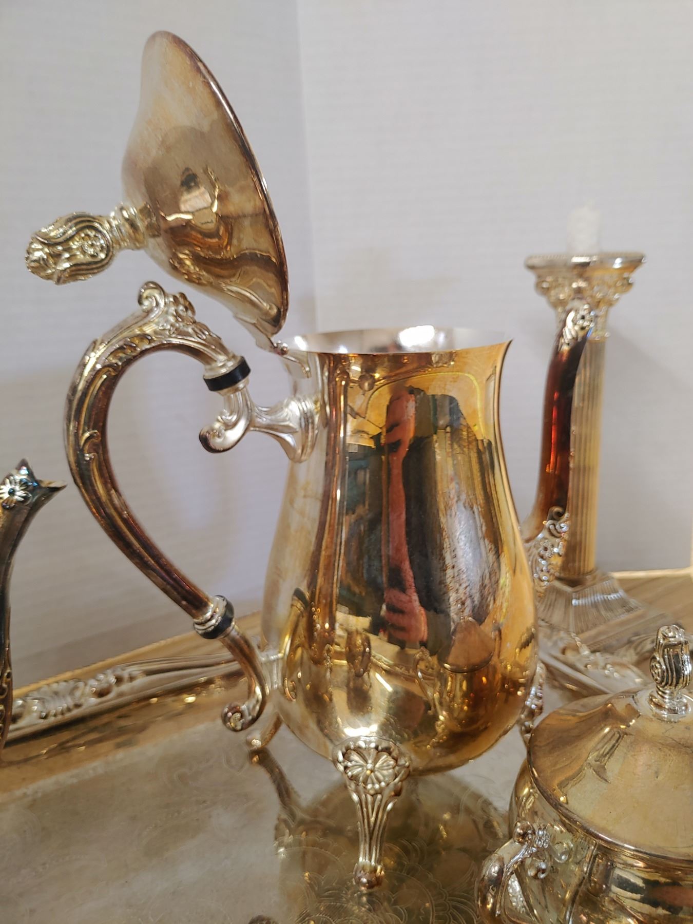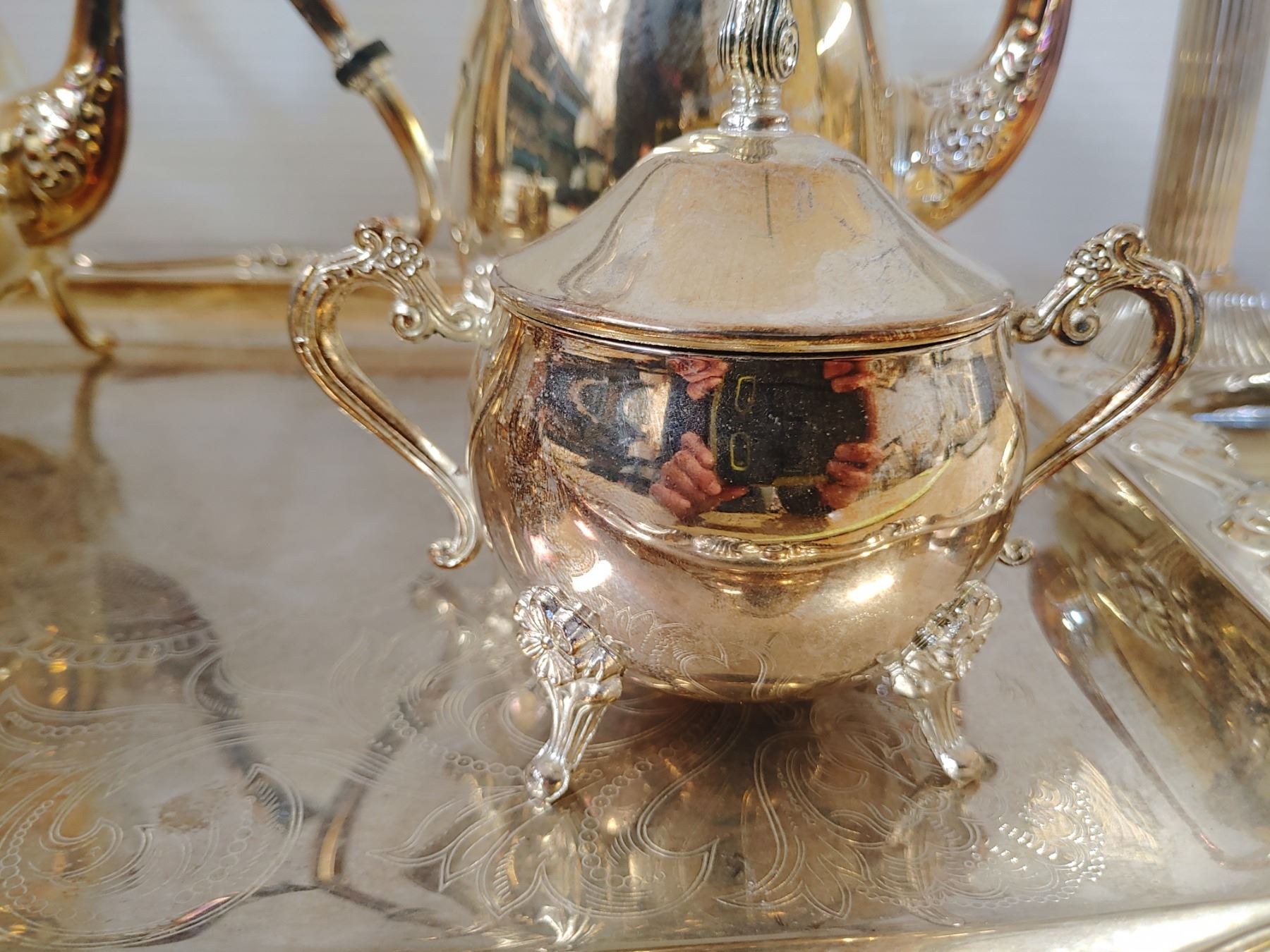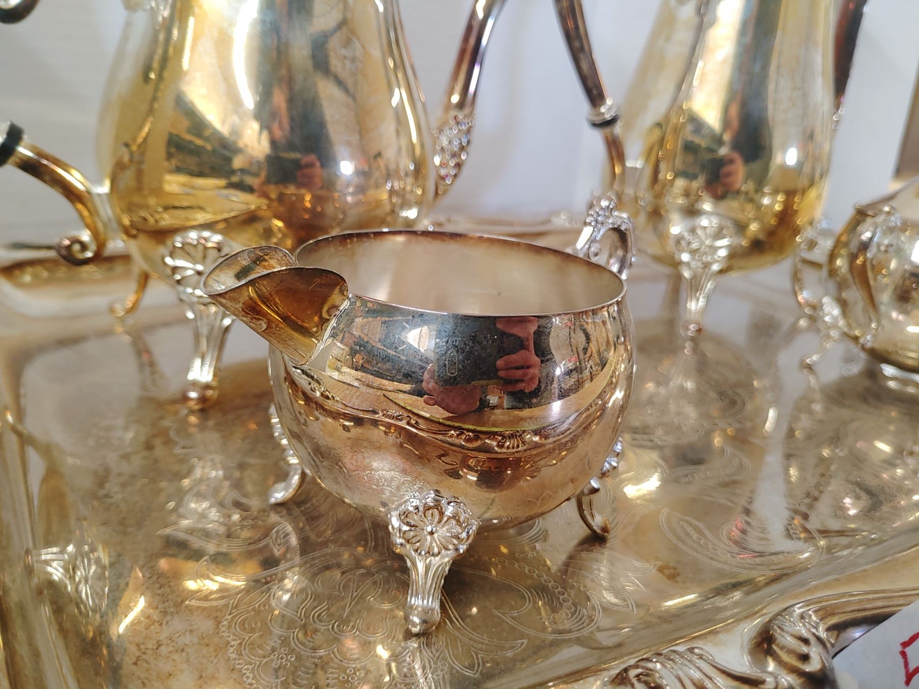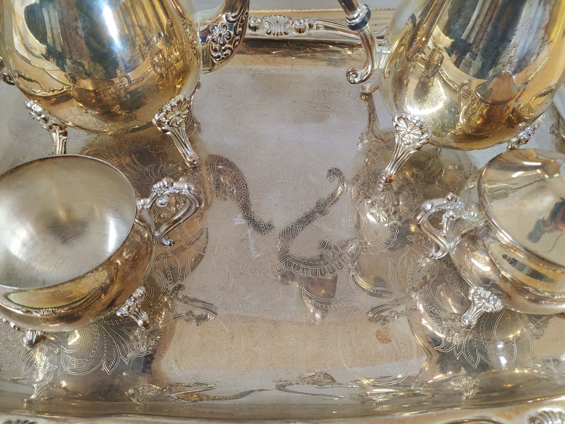 Serving Tray W/ Cream and Sugar Coffee/Tea Pots EP Brass